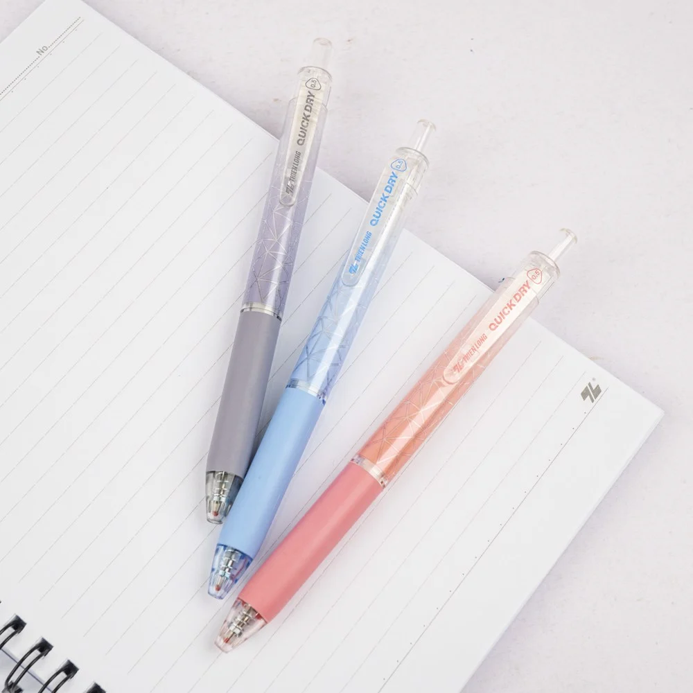 Bút gel Quick Dry Thiên Long GEL-033 ngòi 0.5mm thiết kế có đệm tay TPE êm ái, hạn chế tối đa tình trạng đau - mỏi - tay, Mực đậm màu, rõ nét nhanh khô hơn 03 lần so với bình thường.