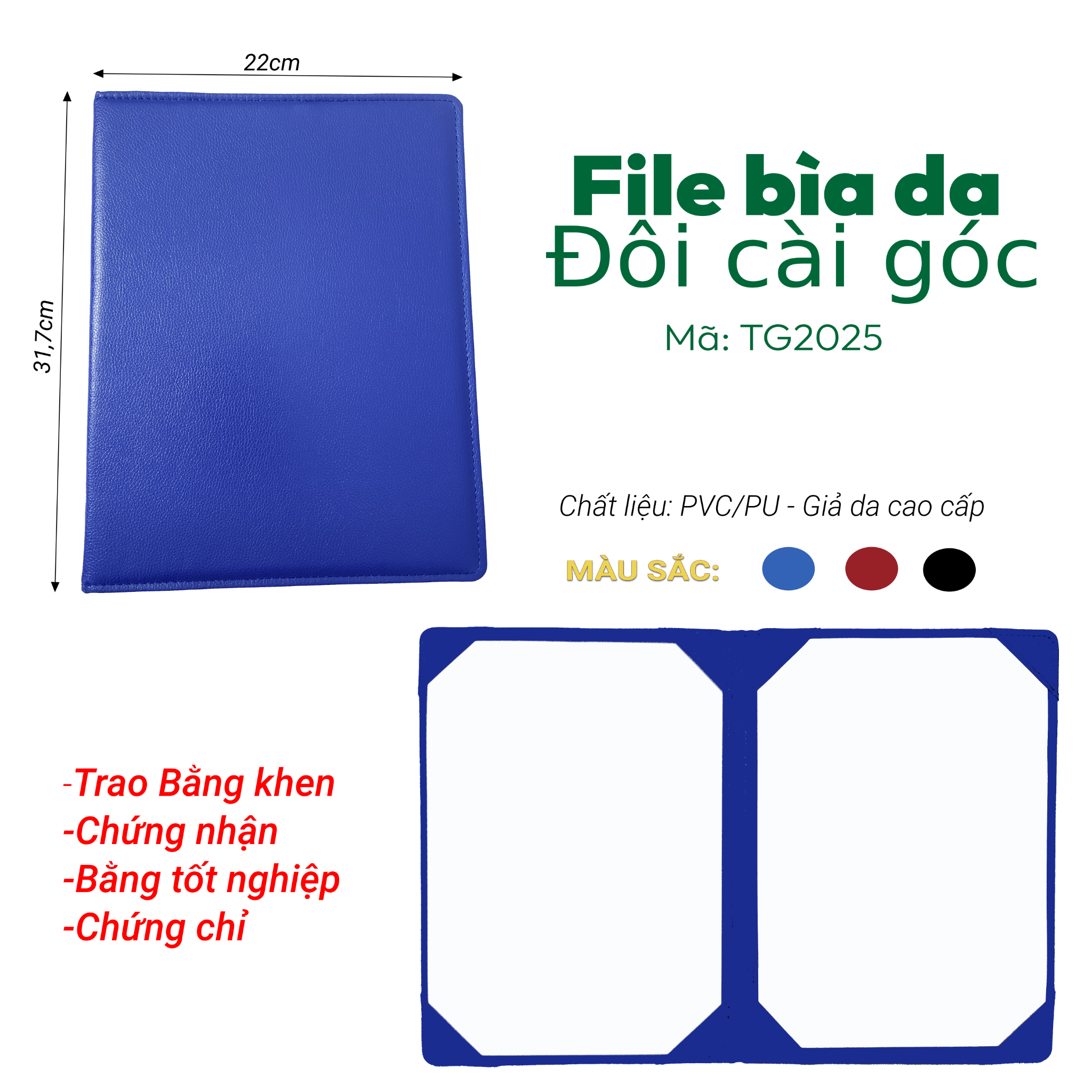 [MẪU 2025] File Bìa Da Đôi Cài Góc TG2025 - Kích thước: 317x220mm - Sử dụng trong Hội Nghị, Trao Giải/Chứng Nhận/Chứng Chỉ/Bằng Khen/Bằng Tốt Nghiệp