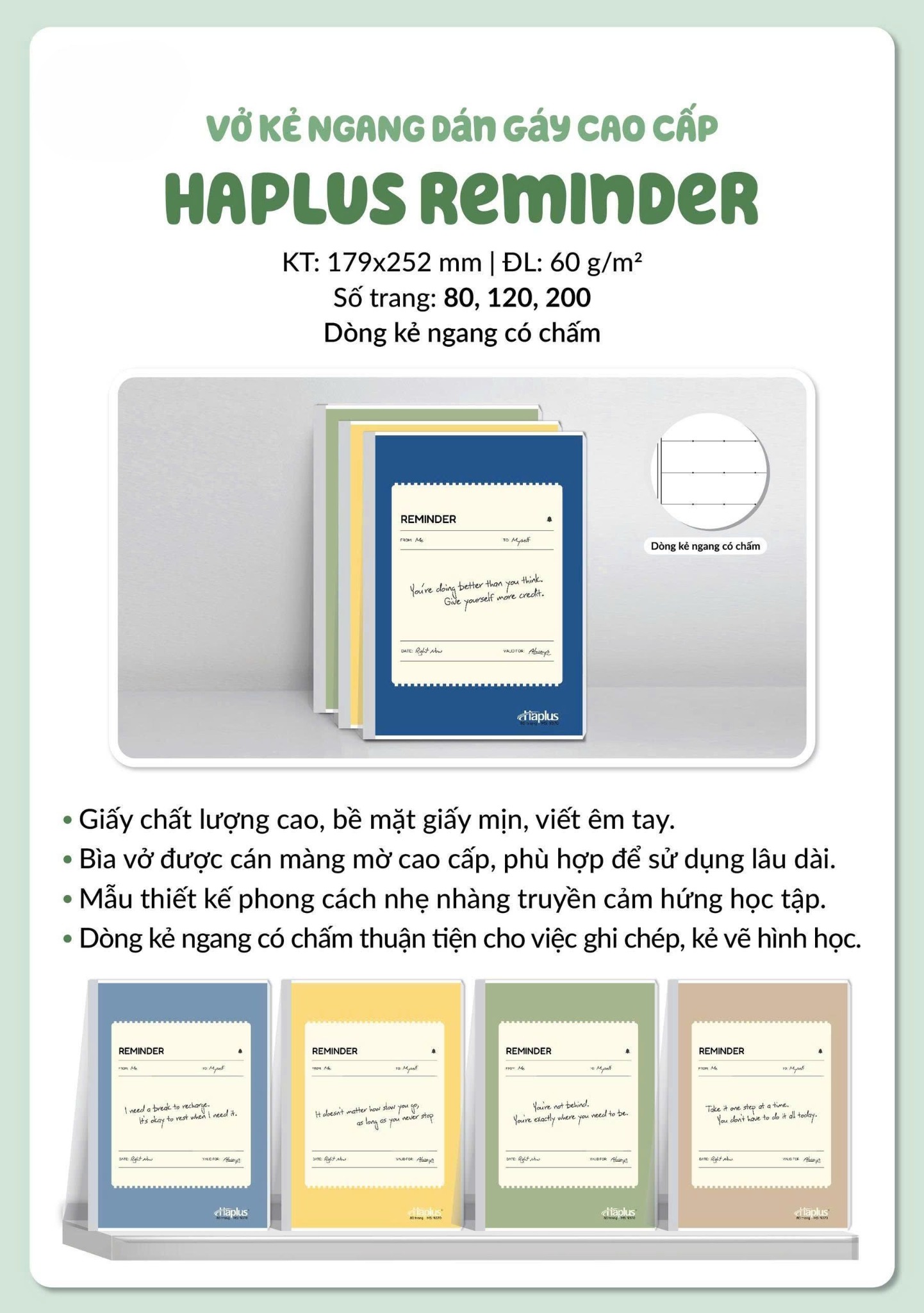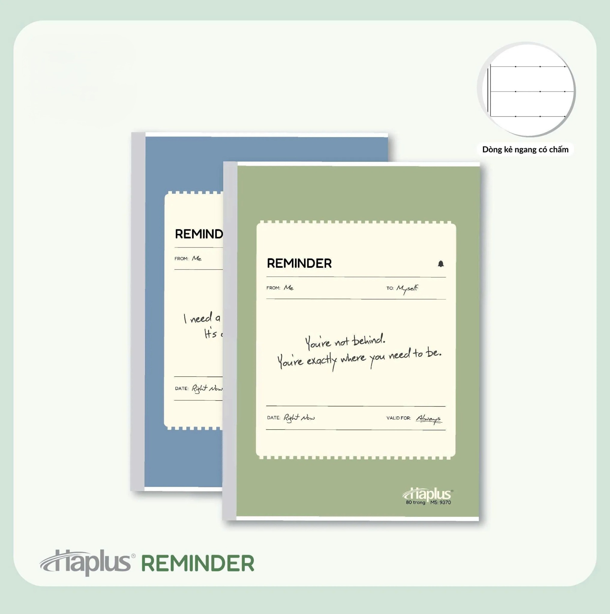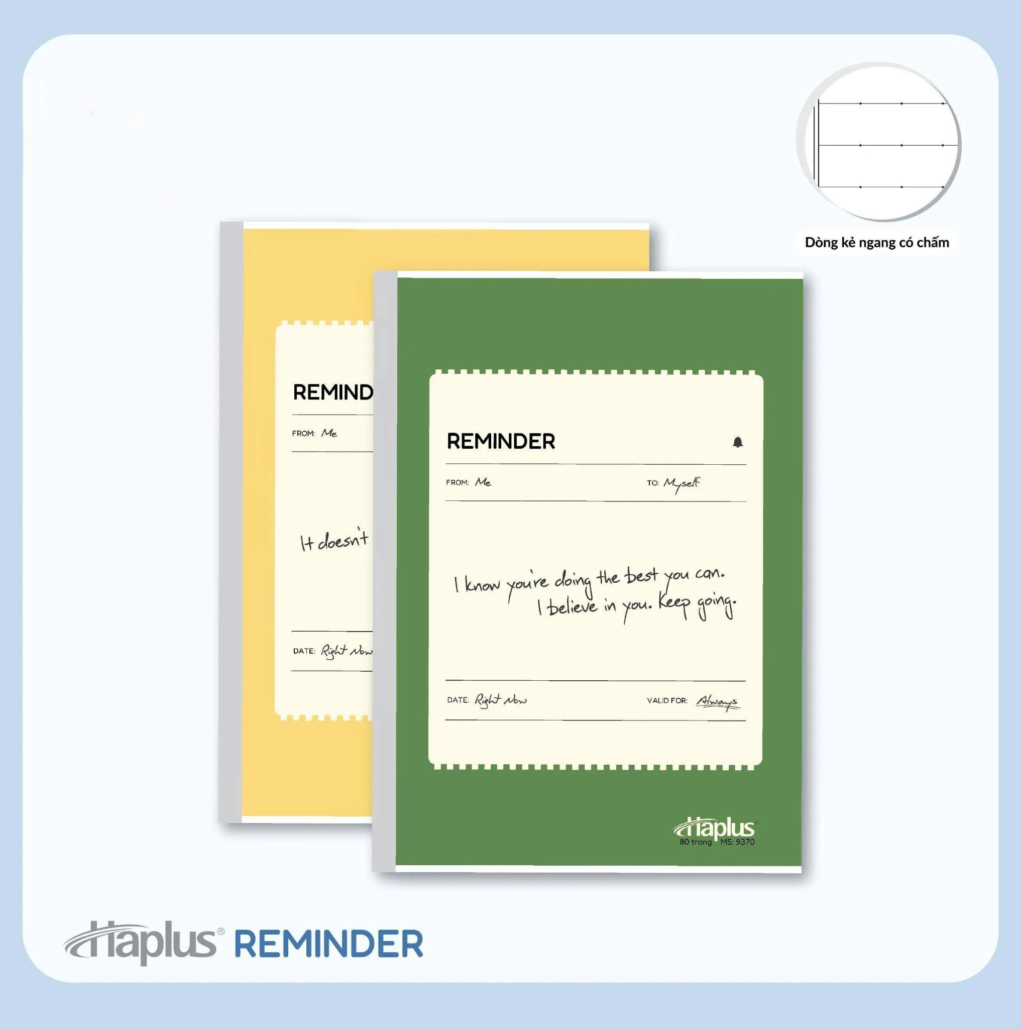 Vở kẻ ngang có chấm Haplus Reminder 80 Trang 9370 là dòng sản phẩm dán keo cao cấp của Hải Tiến