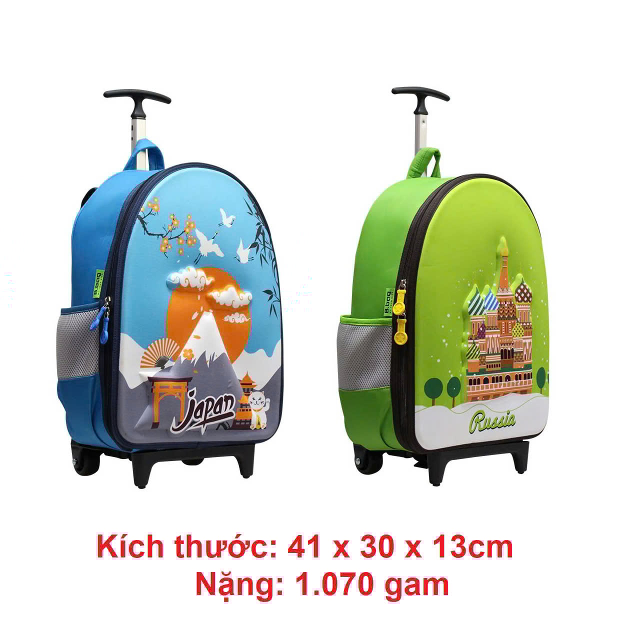 - Sử dụng balo cần kéo B.bag giúp bé bảo vệ được đôi vai và phần lưng của bé. Nhờ hệ thống bánh xe nhẹ trơn dễ di chuyển.