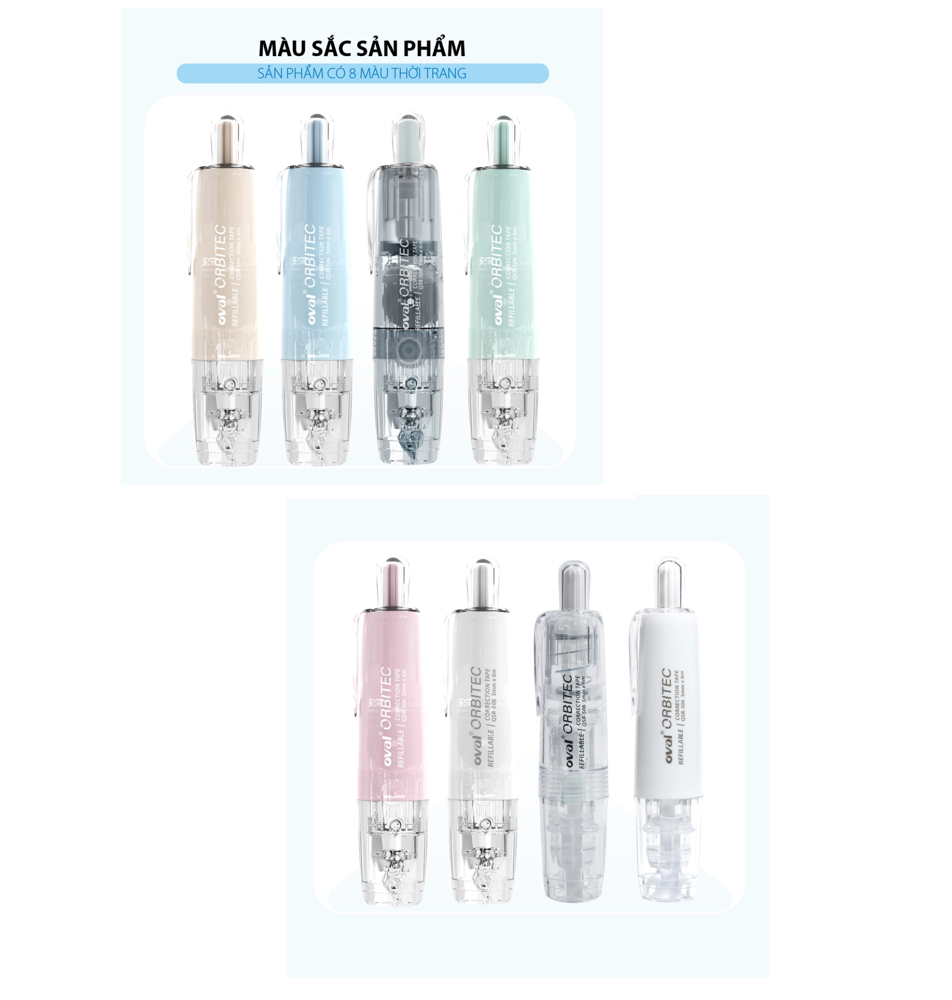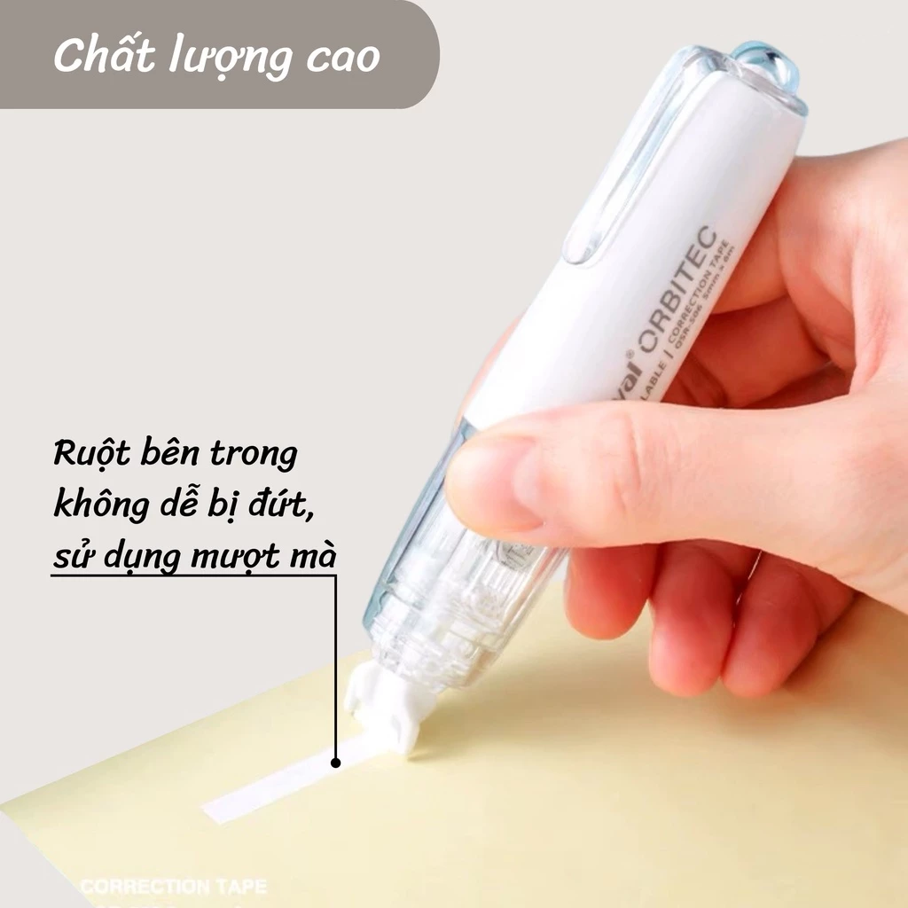 Băng xóa Oval Orbitec QSR-506 được thiết kế có dạng bấm như bút, mang lại sự thuận tiện khi sử dụng và bảo vệ đầu ngòi khỏi các tác động vật lý.