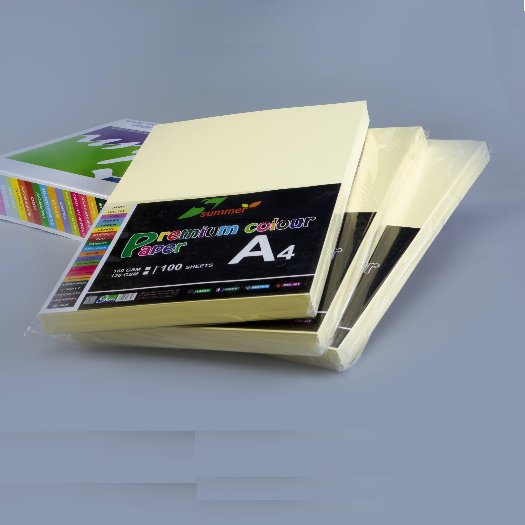 Bìa màu A4 màu VÀNG KEM - Định lượng 160gsm - 100 tờ/tập
