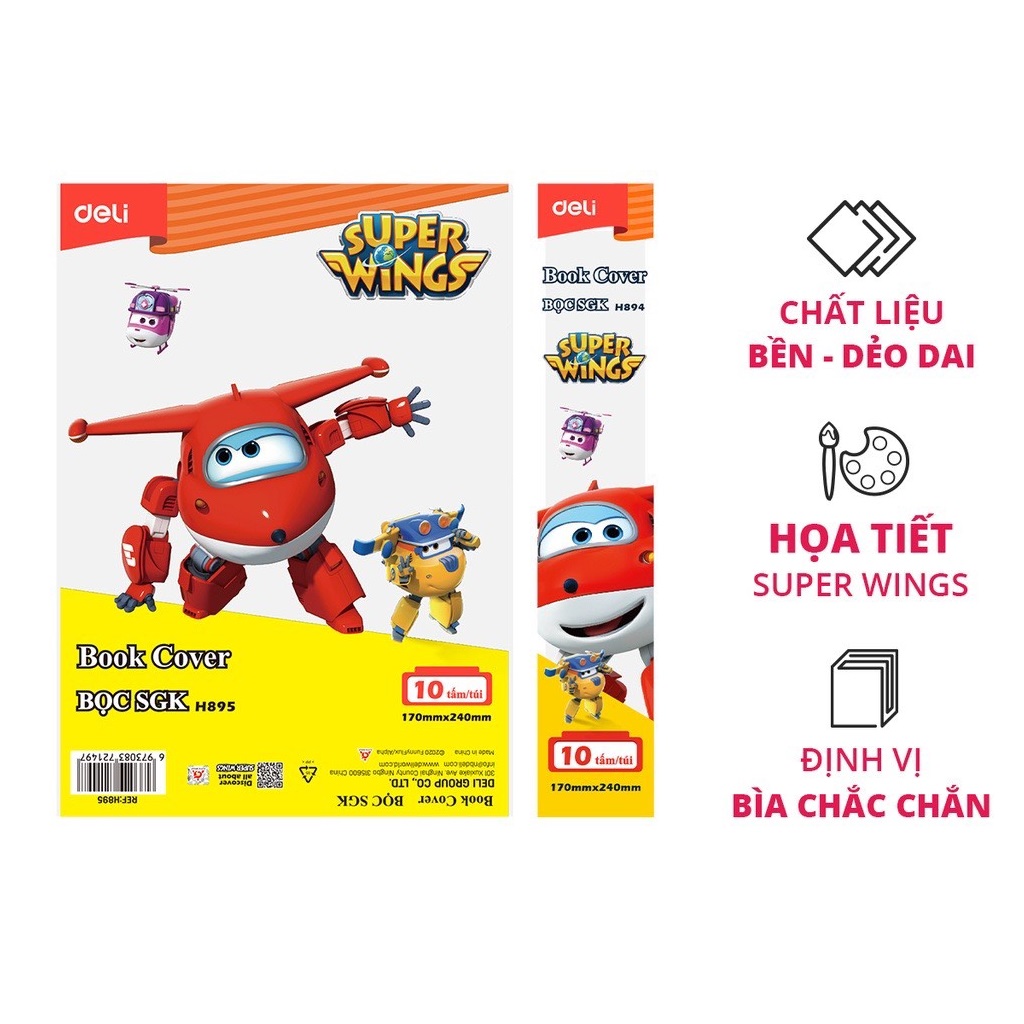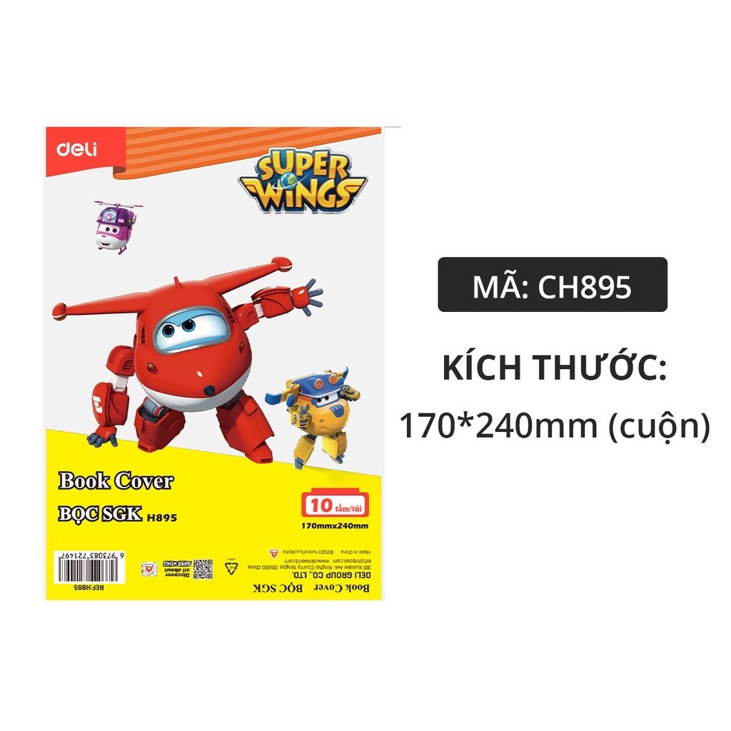 Tập 10 Bọc sách giáo khoa, vở ôly Deli CH895 (bọc cho sách, vở có Kích thước: 170 x 240mm)
