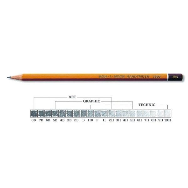 Bút chì Tiệp KOH-I-NOOR 1500 thân vàng - 2B...8B và H...6H - Nhập khẩu bởi Cty Golden Pen
