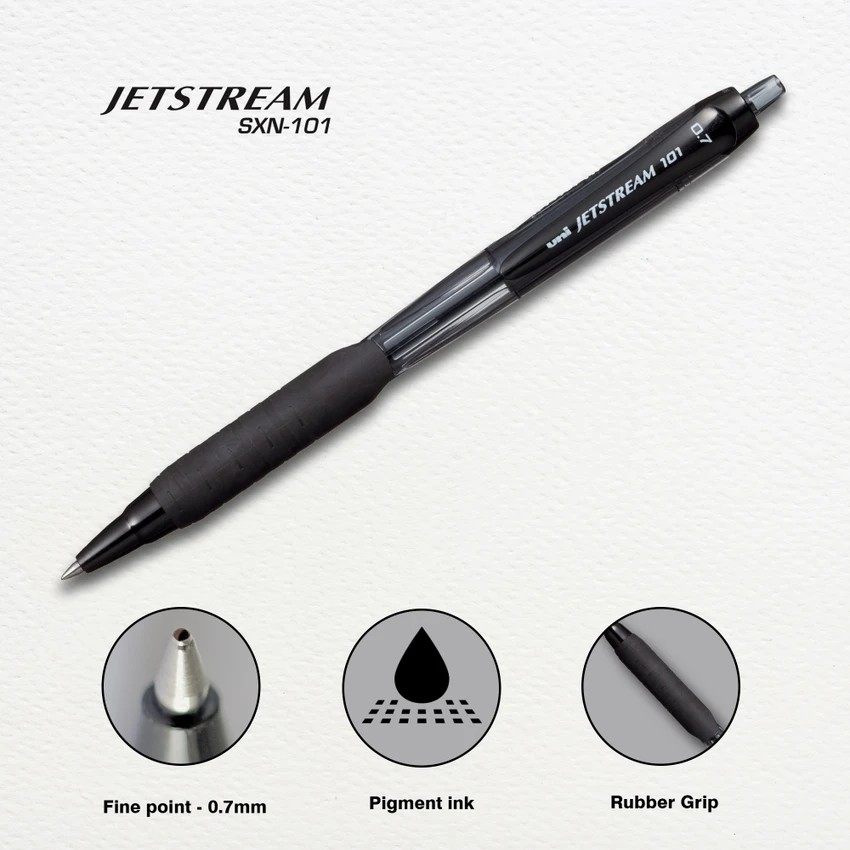 Bút bi bấm Uni Jetstream SXN-101 ngòi 0.7mm là dòng bút bi nước cao cấp thuộc thương hiệu Uni-ball (Nhật Bản), nổi bật với thiết kế hiện đại, mực trơn mịn và độ bền vượt trội.