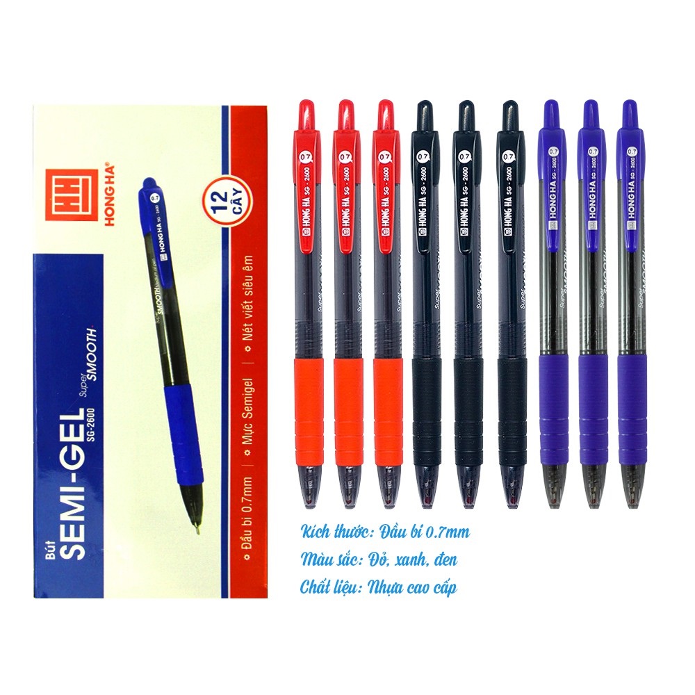 Bút bi Hồng Hà SG-2600 nét 0.7mm là sự kết hợp giữa dòng bút bi và bút Gel, cho nét viết trơn - êm - mực ra đều. Kiểu dáng thiết kế hiện đại - phần tay cầm có đệm cao su giảm trơn trượt tạo sự thoải mái khi viết. Sản phẩm đột phá về công nghệ sản xuất mực - phát huy tối đa ưu điểm của bút gel và bút bi.