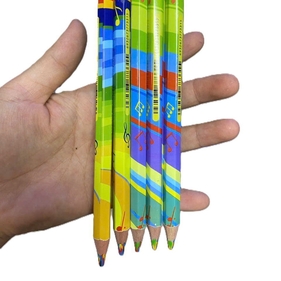 bút chứa ruột chì nhiều màu trong cùng 1 lõi, khi tô cho hiệu ứng màu sắc chuyển đổi sinh động. Vỏ bút trang trí họa tiết âm nhạc, màu sắc tươi sáng bắt mắt, thu hút trẻ nhỏ.