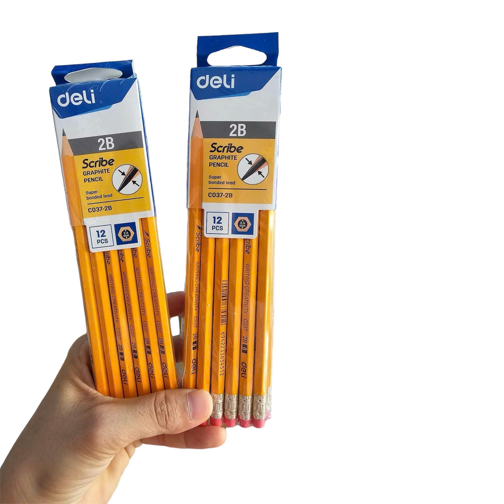 Bút chì Deli C037 2B - Thân lục giác, có đầu tẩy