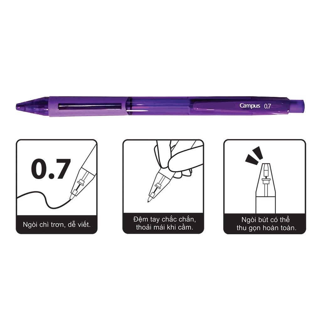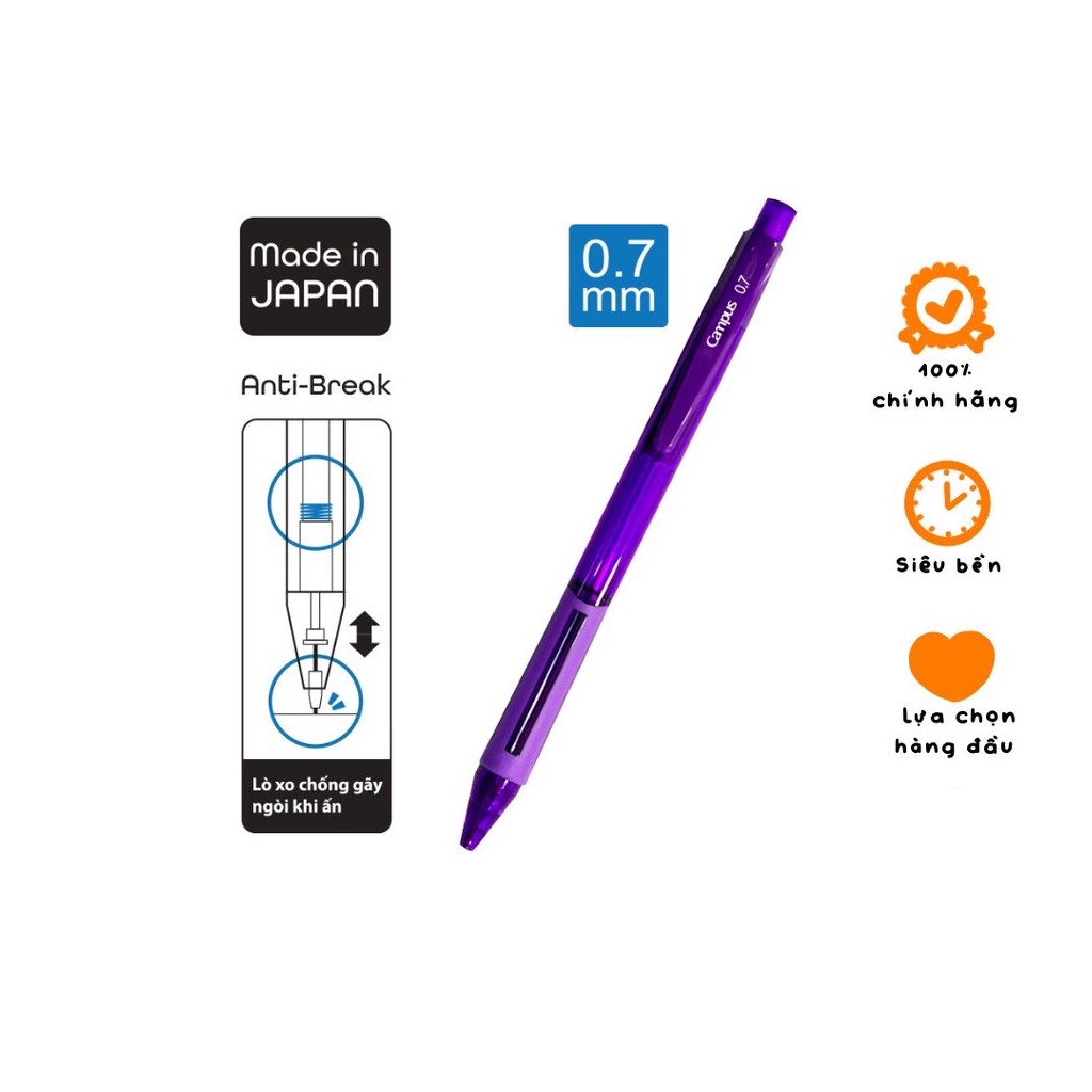 Bút chì kim Campus Young And Fresh nét 0.7mm với thiết kế lò xo chống gãy ngòi đến từ Nhật Bản