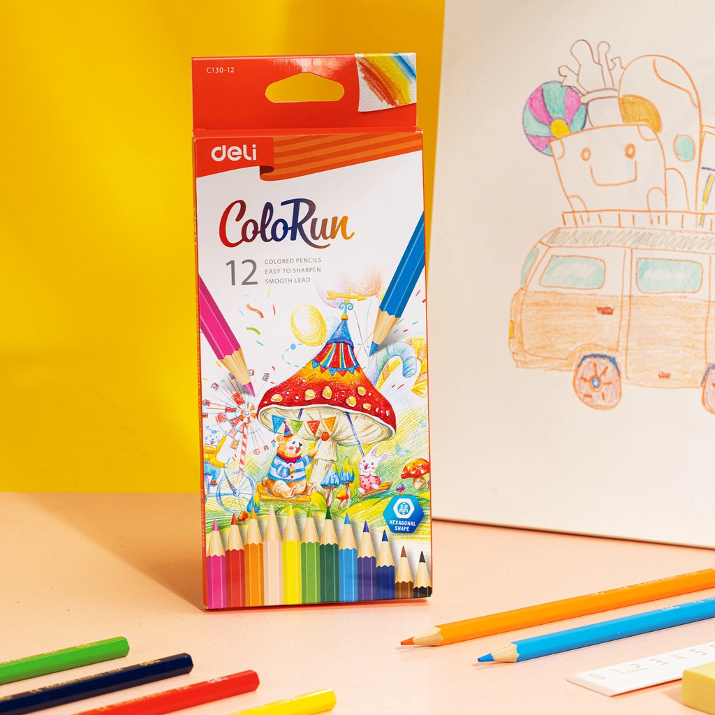 Bút chì màu 12 màu ColoRun Deli EC130-12 - Thân bút hình lục giác, lõi chì 3.0mm