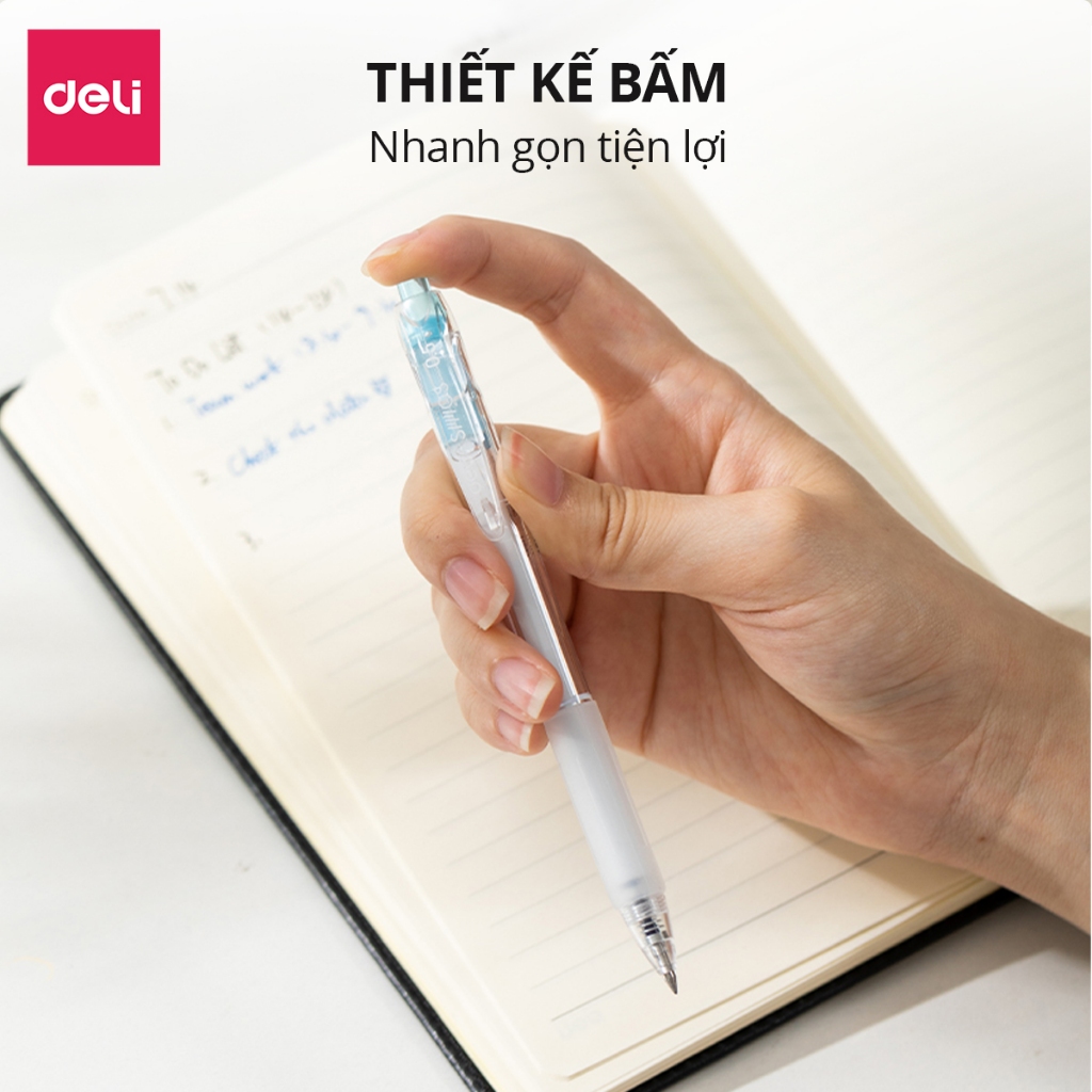 Bút gel Deli EG057 ngòi 0.5mm - Mực xanh, đen, mực viết trơn tru, dùng viết sổ caligraphy
