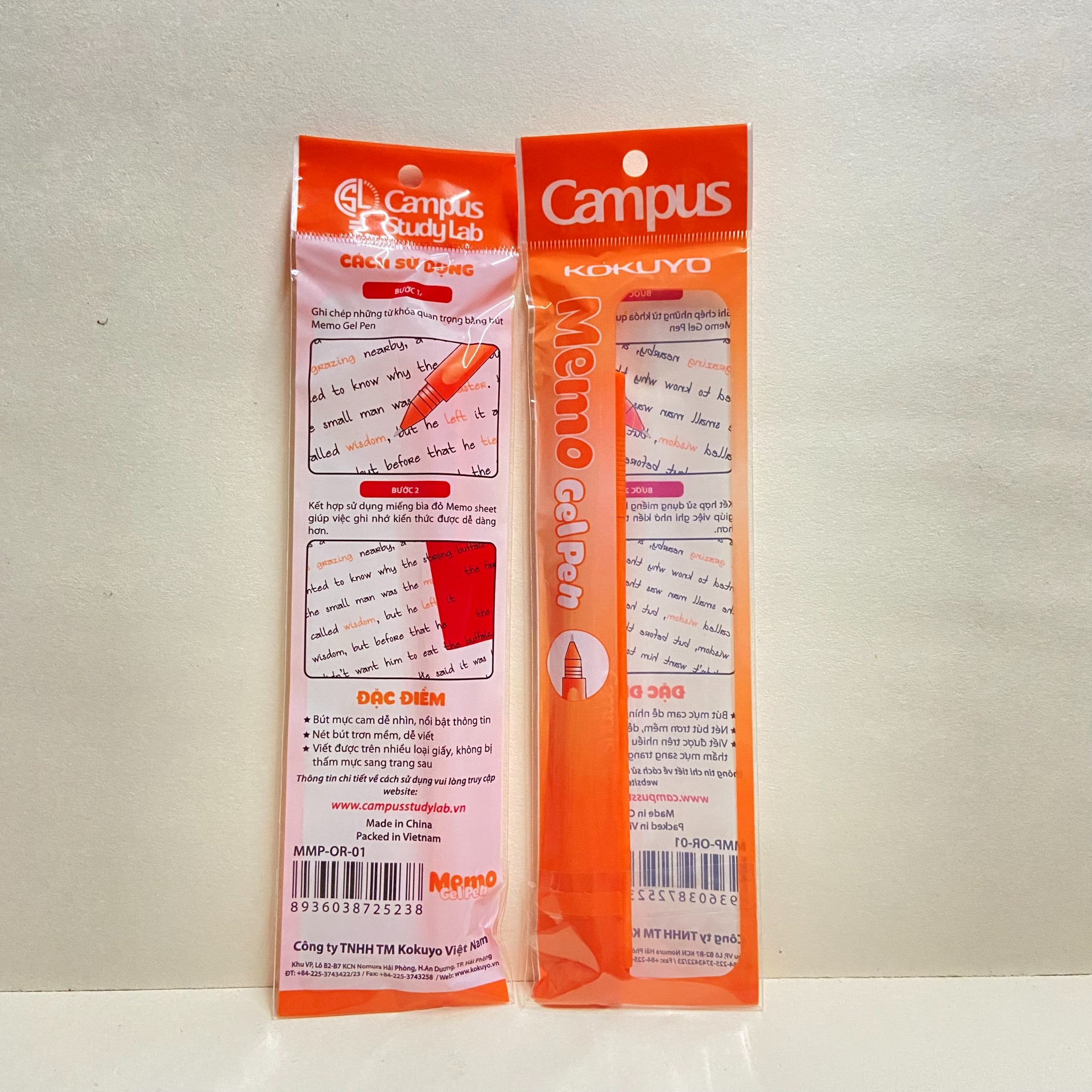- Cách thức sử dụng rất đơn giản. Viết câu trả lời/ý cần nhớ bằng Bút ghi nhớ Campus Memo Pen MMP-OR-01 - cây bút màu cam đặc biệt, sau đó sử dụng tấm phin màu đỏ để che khu vực cần học thuộc (Tấm phin trong bộ dụng cụ ghi nhớ). Phần câu chữ được viết bằng mực đen hoặc màu tối vẫn có thể đọc được, nhưng phần mực màu cam sẽ hoàn toàn biến mất, cho phép bạn tự kiểm tra chính xác các câu trả lời/ý cần nhớ.