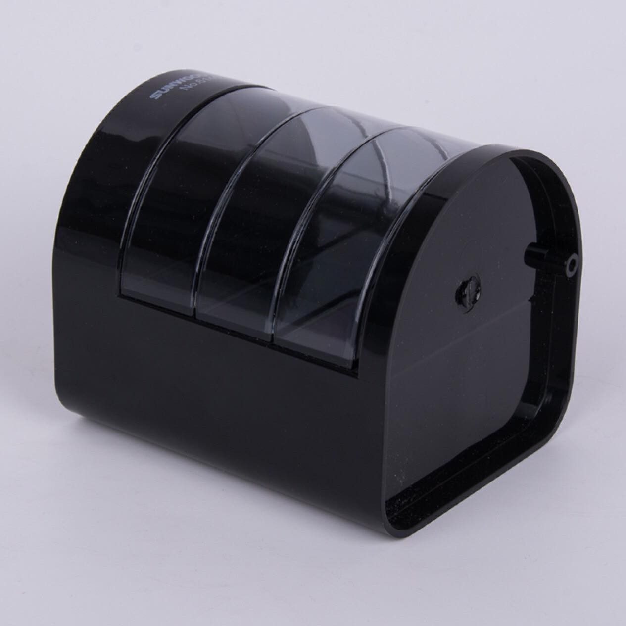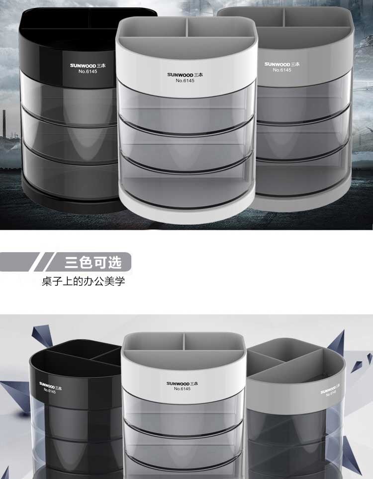 Mặt trước gồm 3 ngăn, nhựa trong, có thể mở ra đóng vào dễ dàng. Những ngăn này bạn có thể đựng các đồ vật nhỏ như kẹp giấy, tẩy gôm, giấy nhớ loại nhỏ, hộp ghim,….