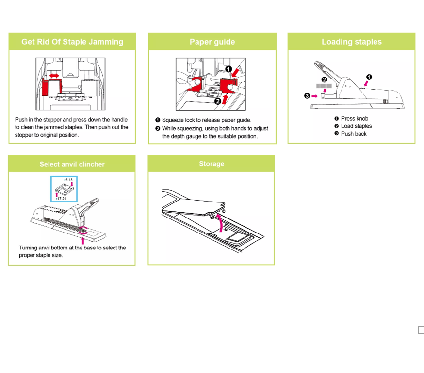 • Đặc điểm an toàn: Cơ chế tháo ghim được cấp bằng sáng chế giúp loại bỏ ghim kẹt an toàn và tiện lợi.