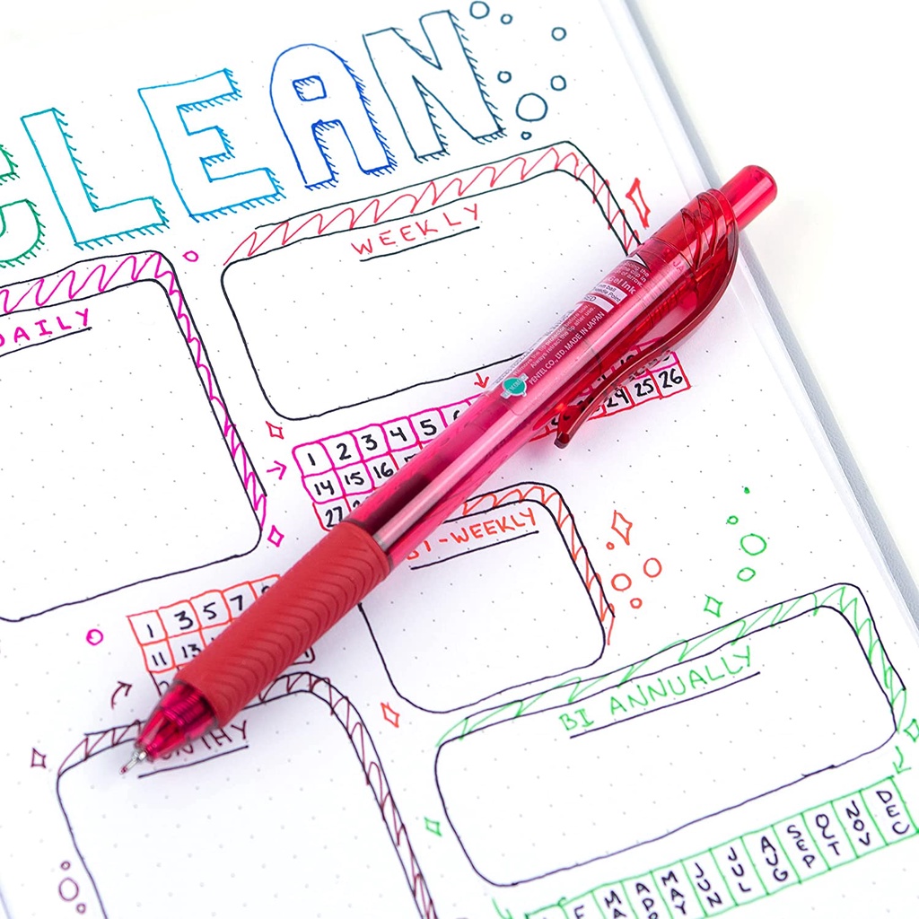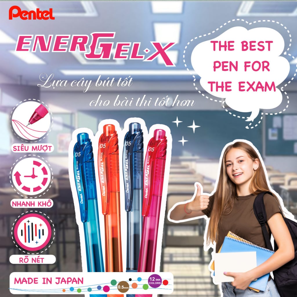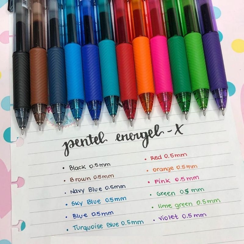 Bút gel Pentel Energel BLN105 ngòi 0.5mm Với 12 màu cực xinh xắn kèm theo đó là chất lượng tuyệt đỉnh khẳng định vị thế số 1 của dòng Pentel Energel: mực ra đều, viết trơn, mượt, không bị lem hay nhòe và đặc biệt, mực khô nhanh trong 1/3s sau khi viết, chắc chắn cây bút này xứng đáng có mặt trong bộ sưu tập siêu bút của các bạn đấy.