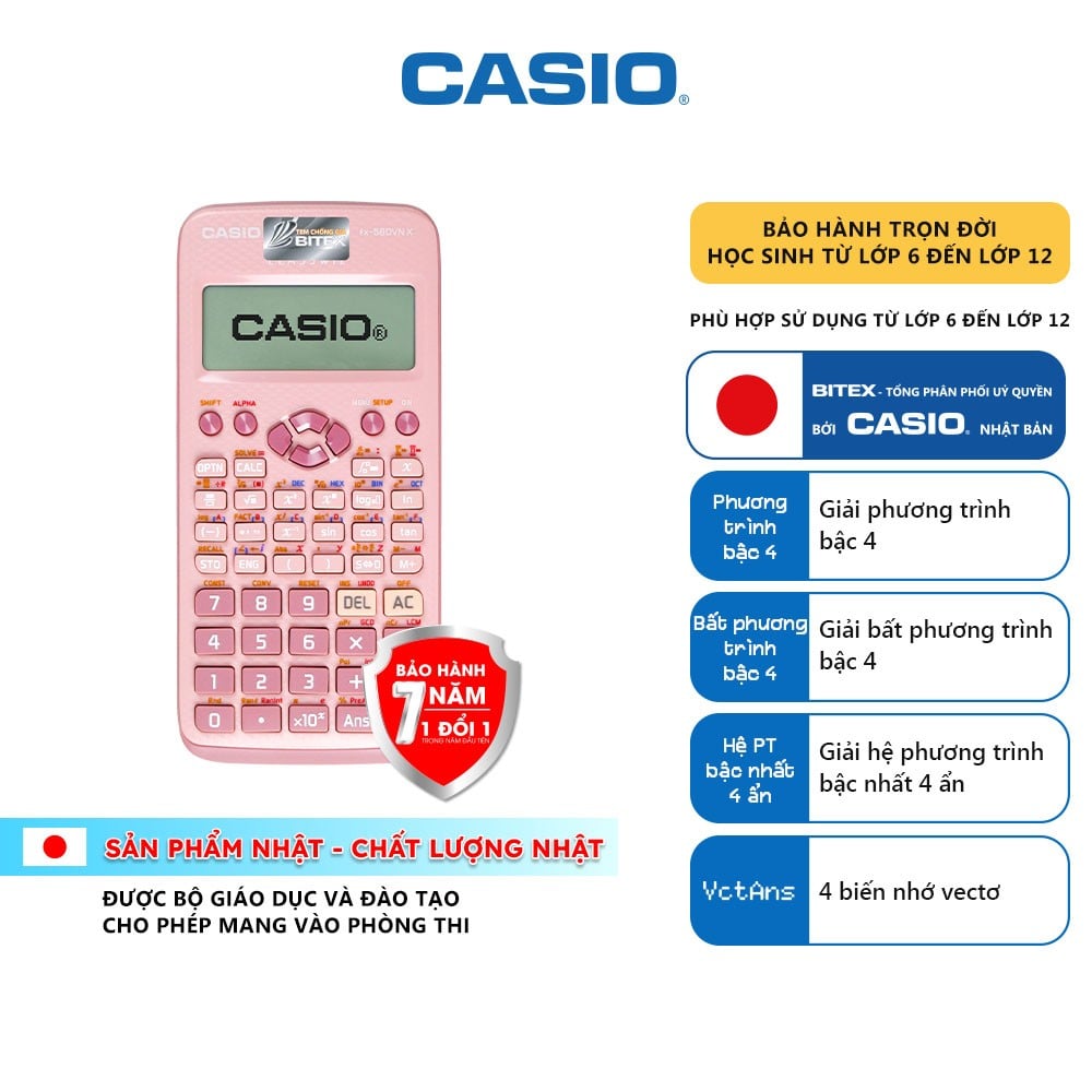 [KM HÃNG] Máy tính Casio FX-580VN X-BK màu hồng - Tặng 7 món quà học tập trị giá 59K