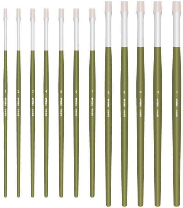 • Loại đầu cọ: Đầu dẹt (Flat) – tạo ra các nhát cắt rộng, phẳng và dứt khoát.