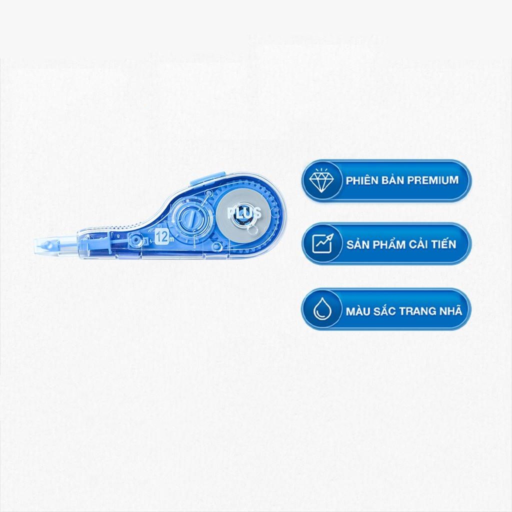 Băng xóa V Plus Japan Premium 5mm x 12m với đầu băng xóa phẳng dễ kéo, có nắp bảo vệ phần đầu khi mở.