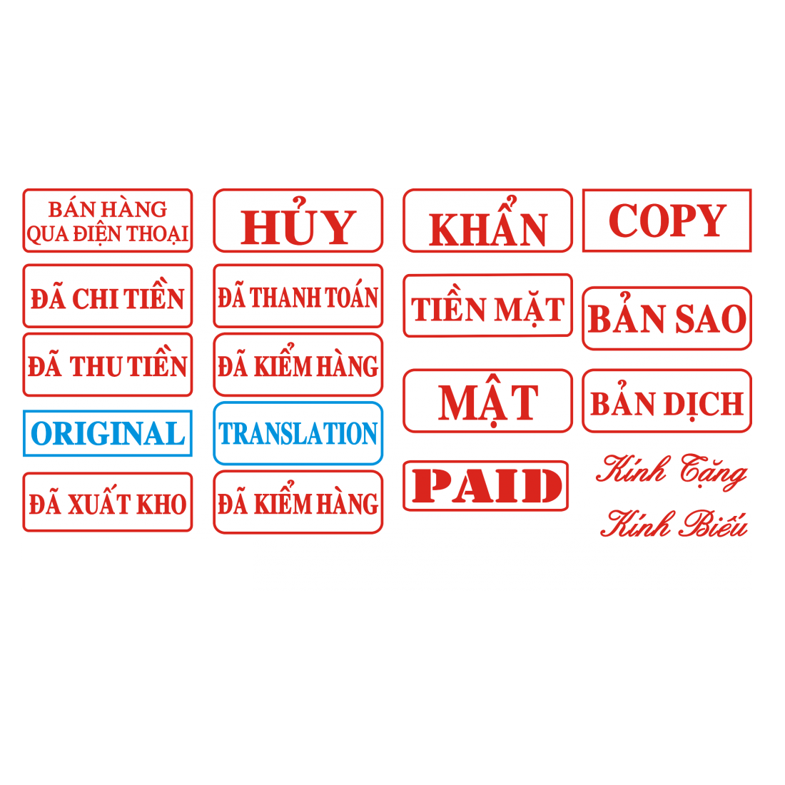 Con dấu khắc sẵn S852 bao gồm: