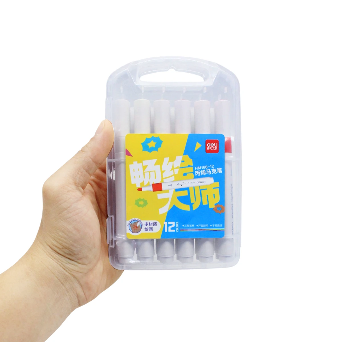 [GIẢM SỐC] Bút sơn Acrylic Marker 12 màu Deli HM166-12 - Chống nước, vẽ trên mọi chất liệu