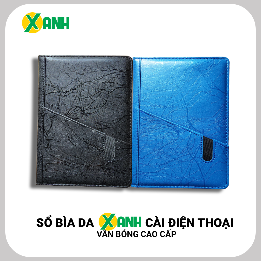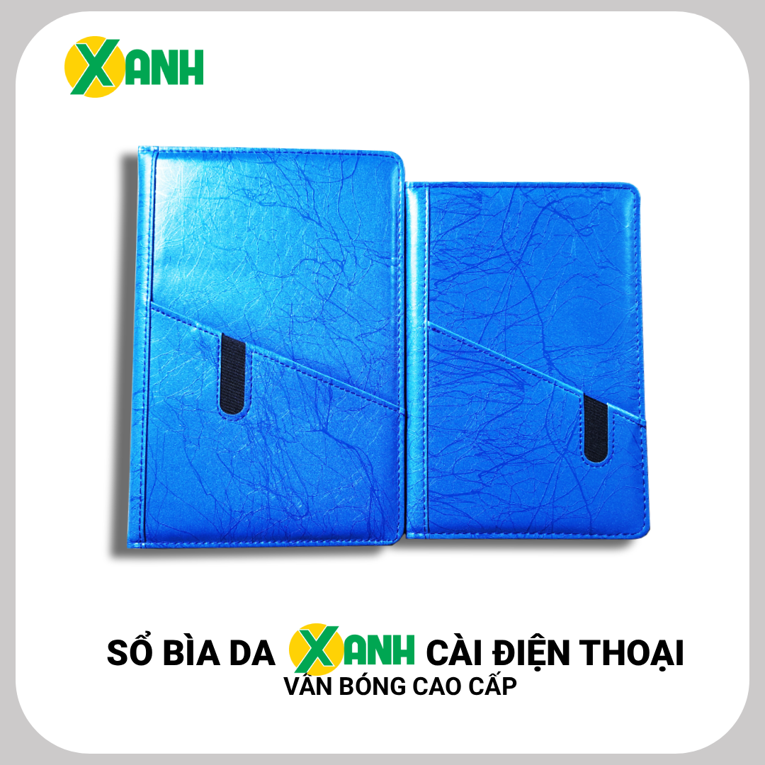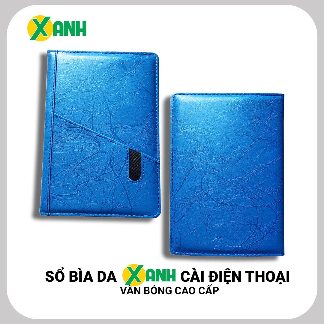 [HÀNG MỚI] Sổ Bìa Da XANH Cài Điện Thoại Vân Bóng/Trơn Cao Cấp Khổ B5 Mã TG202 - 200 Trang, Định Lượng 80gsm - Giấy Vàng Chống Lóa, Chống Mỏi Mắt