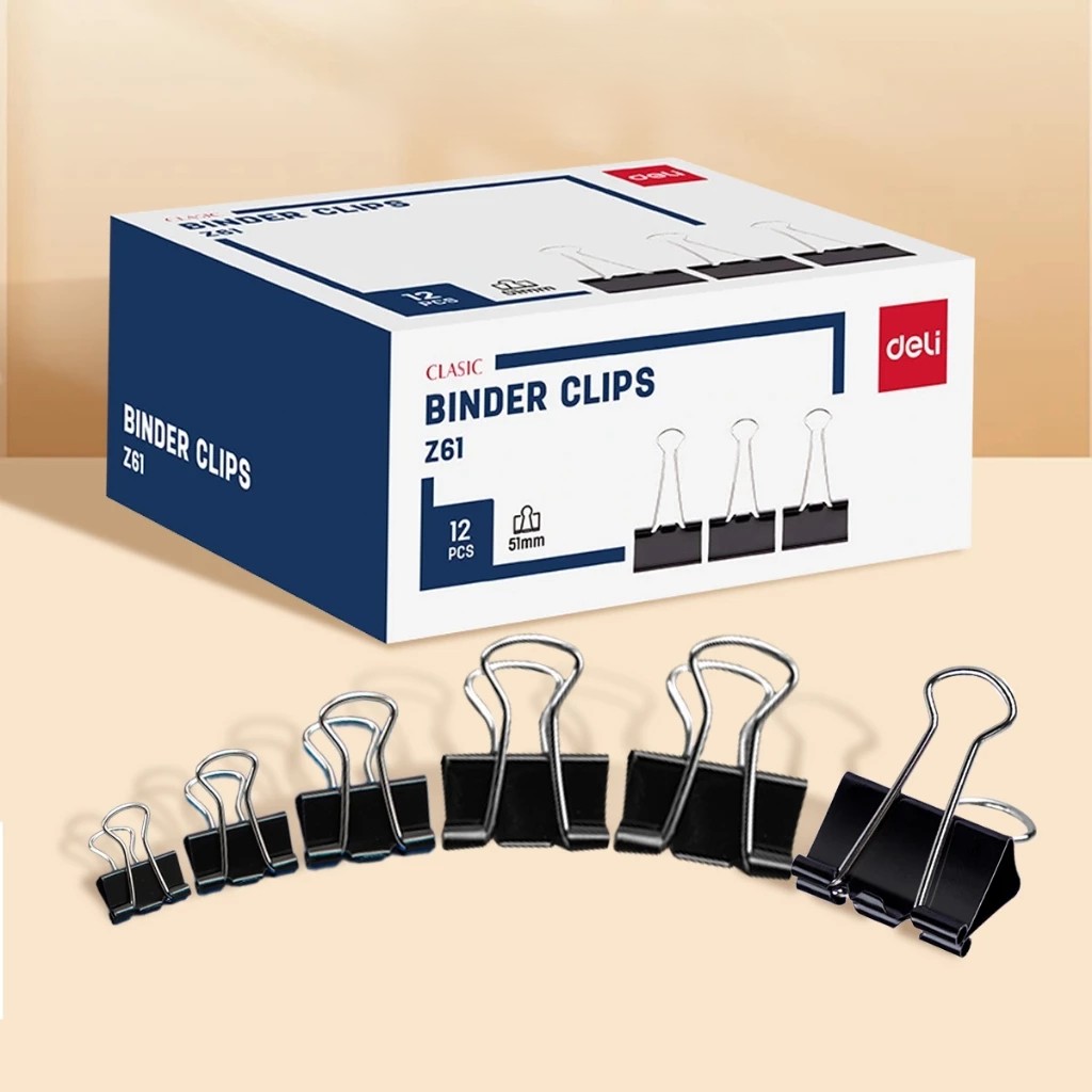 Hộp 12 Kẹp Đen Deli Z62 Size 41mm