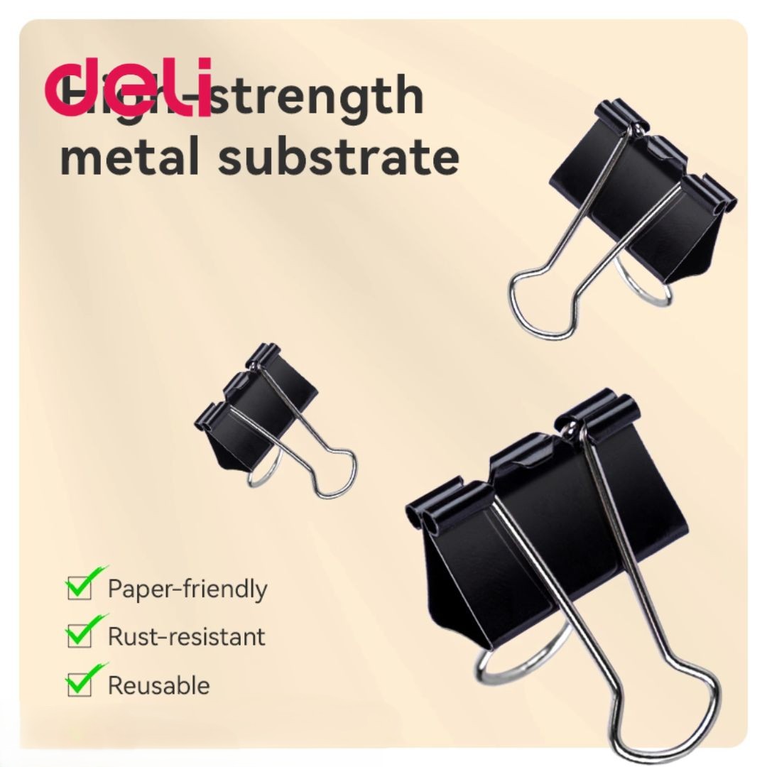 Với kích thước 41mm, kẹp giấy Deli Z62 phù hợp với nhiều loại giấy tờ khác nhau, từ giấy A4 đến các loại giấy có kích thước nhỏ hơn. Màu đen sang trọng, lịch lãm phù hợp với mọi không gian văn phòng.