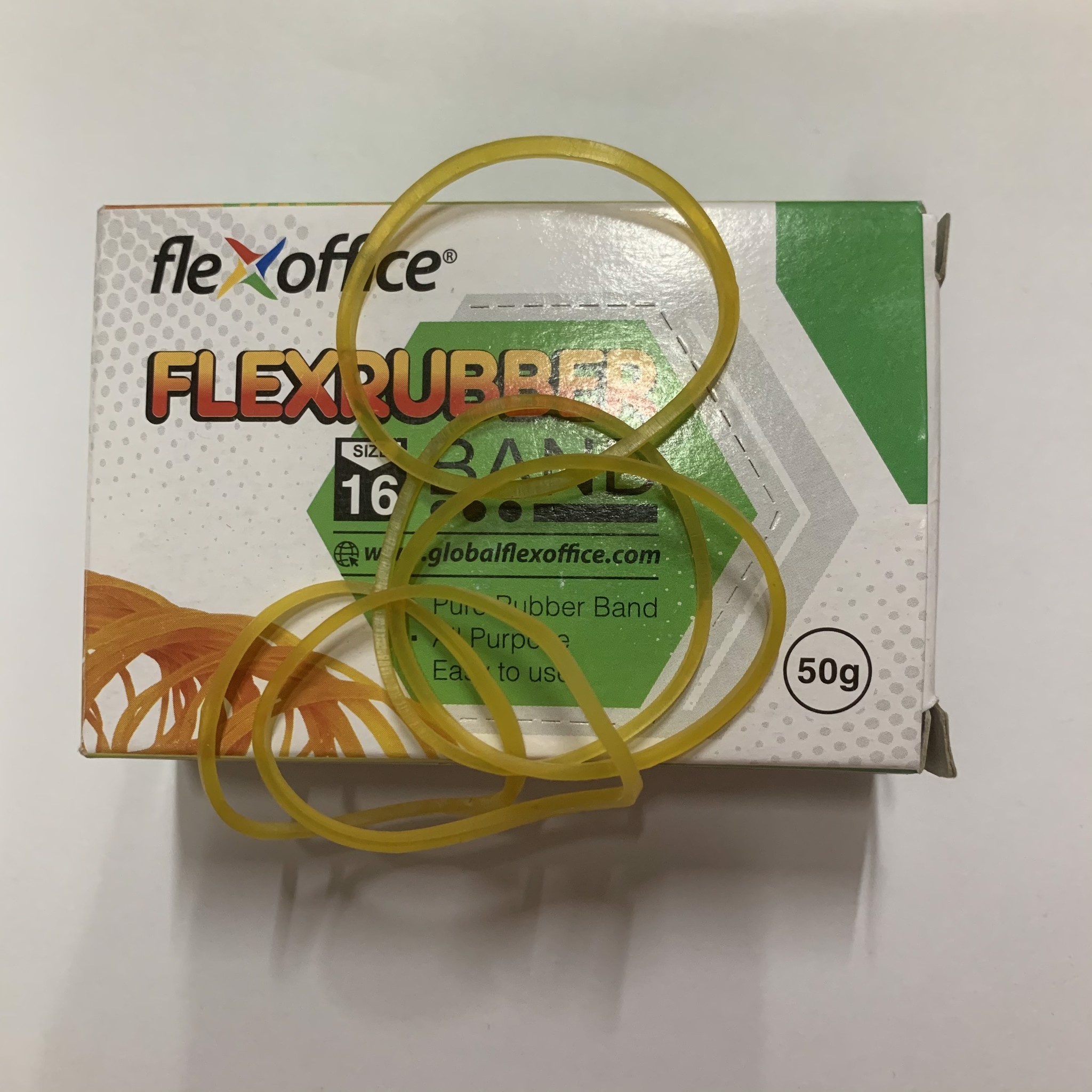 Hộp dây chun Flexoffice 50g FO-RUB02 với kích thước: dài x rộng 60mmx1.5mm