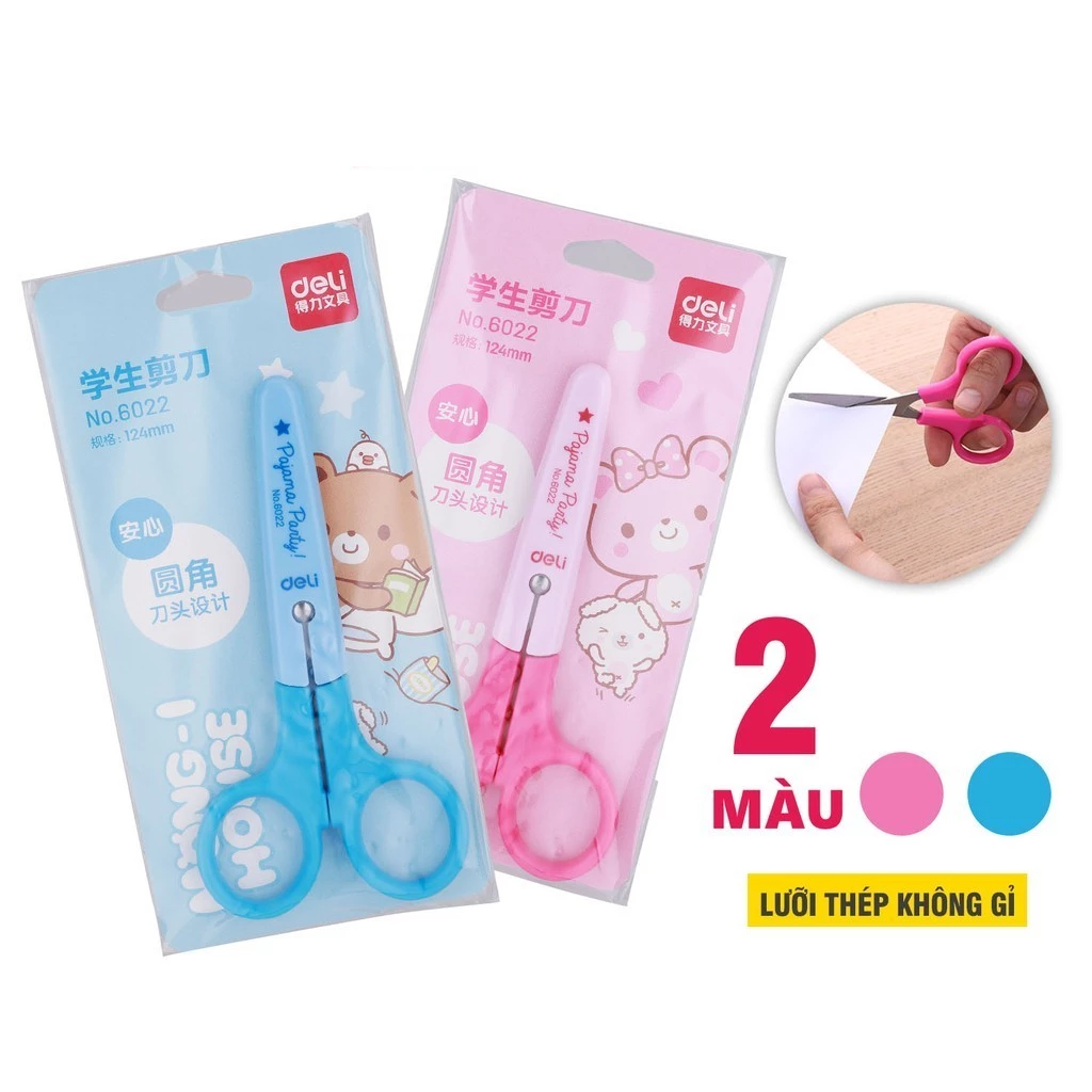 Kéo học sinh Deli 6022 với Chất liệu nhựa ABS, nhẹ và kiểu dáng, thoải mái khi cầm.