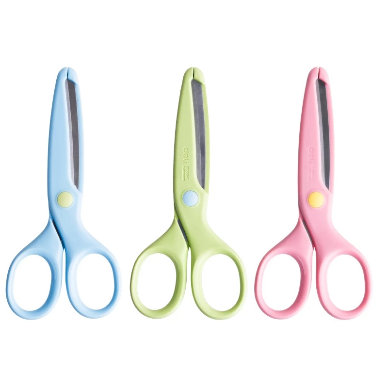 Kéo học sinh Deli 6023 với Chất liệu nhựa ABS, nhẹ và kiểu dáng, thoải mái khi cầm.