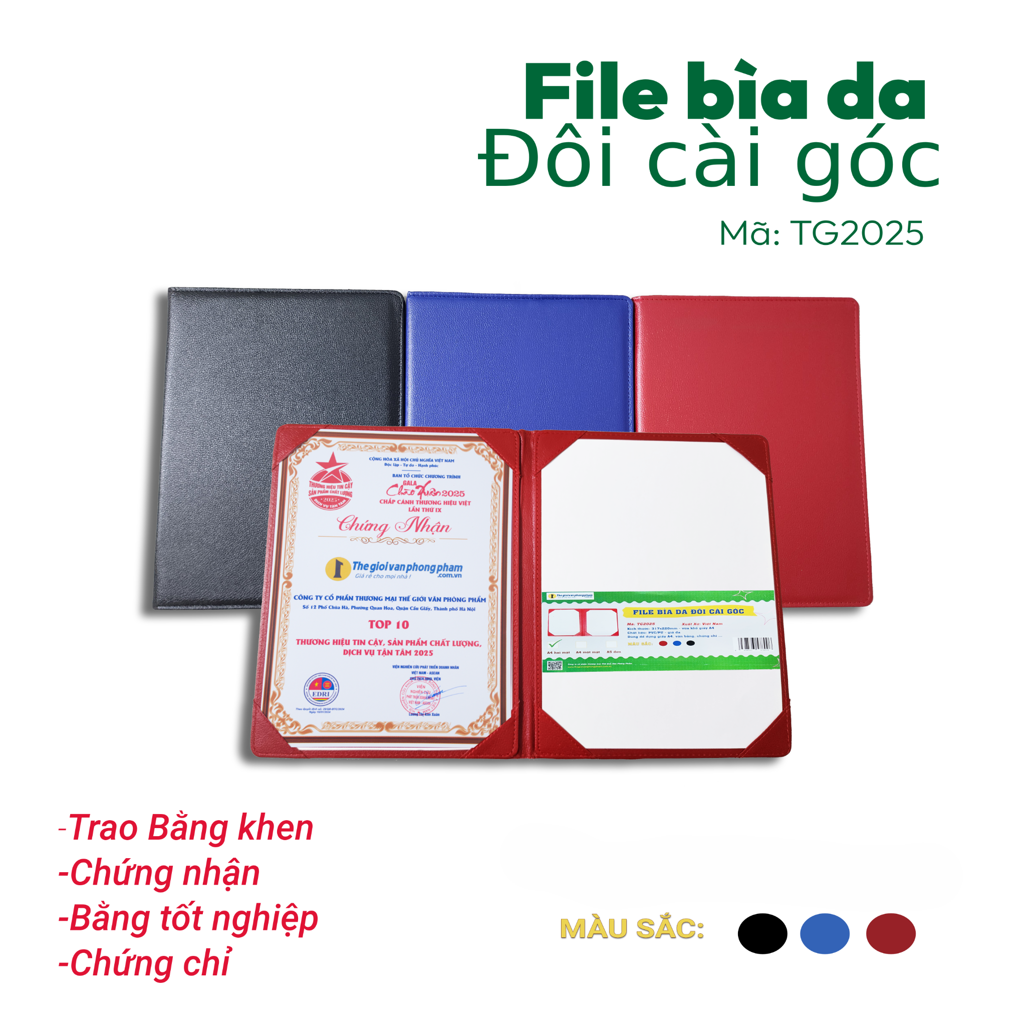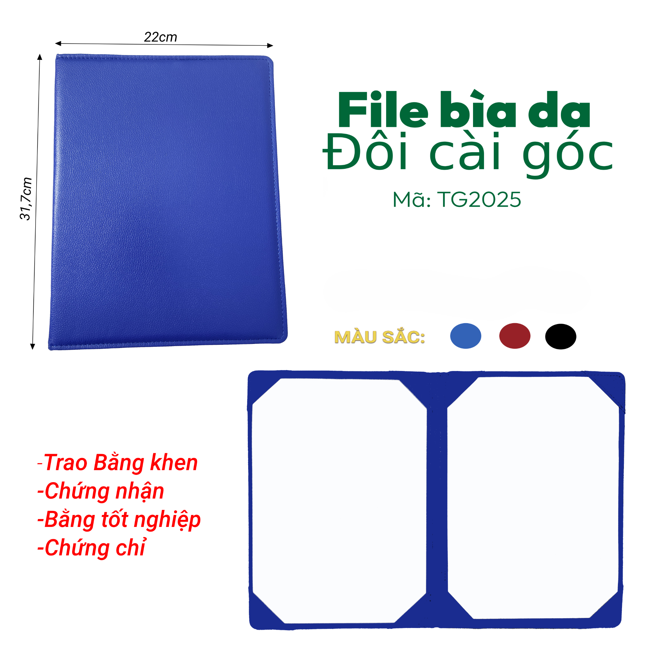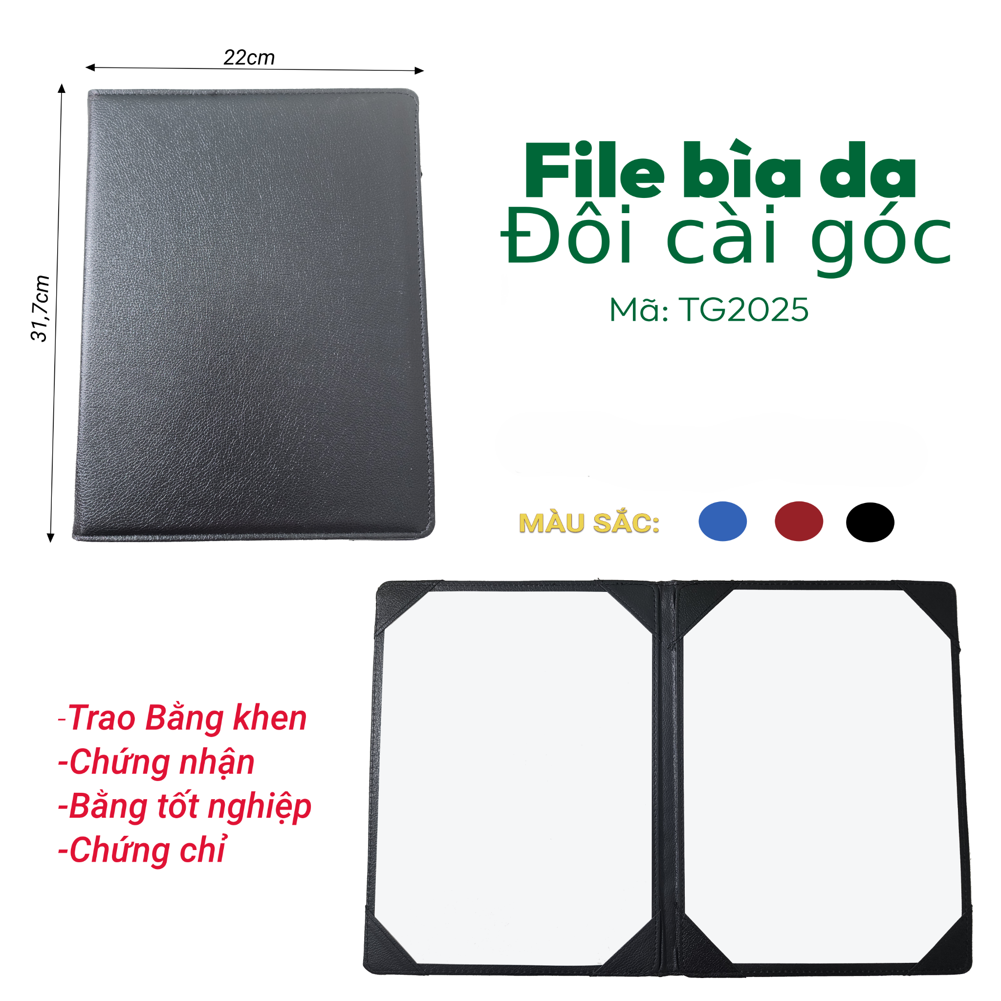 [MẪU MỚI] File Bìa Da Đôi Cài Góc TG2025 - Kích thước: 317x220mm - Sử dụng trong Hội Nghị, Trao Giải/Chứng Nhận/Chứng Chỉ/Bằng Khen/Bằng Tốt Nghiệp
