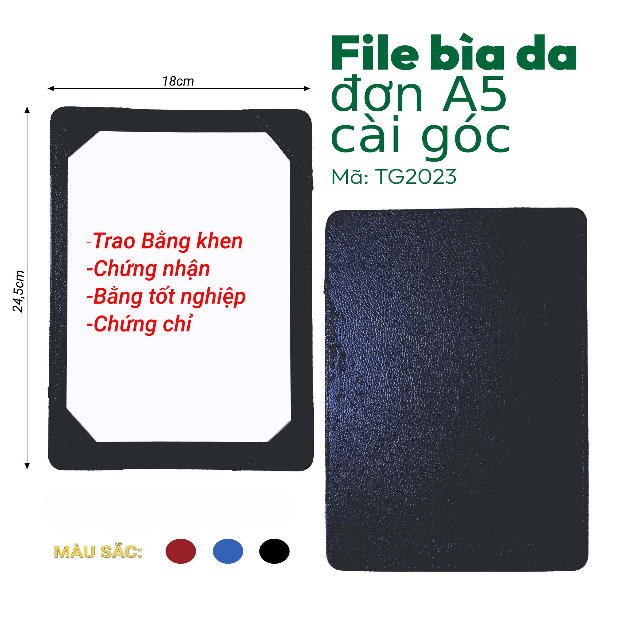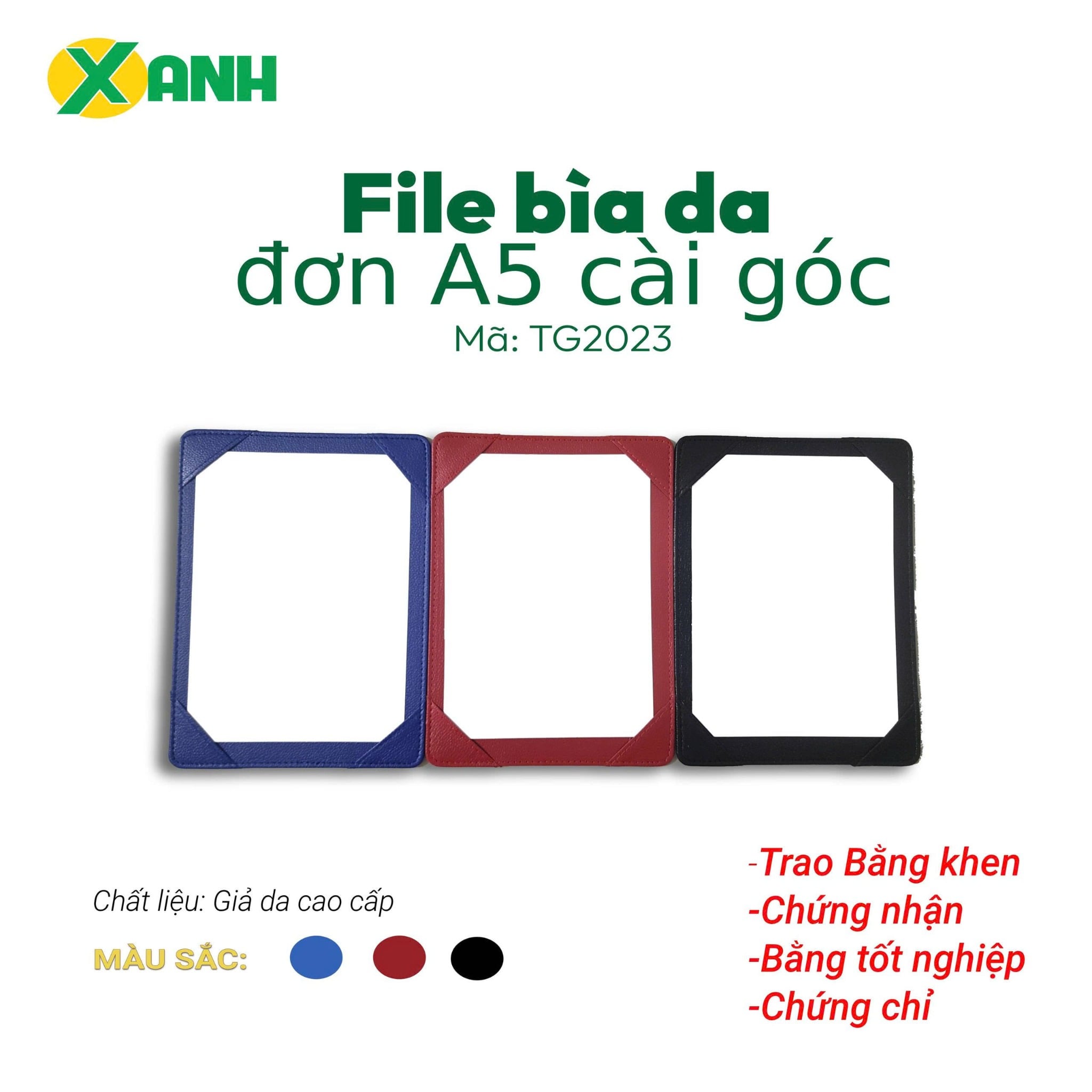 [MẪU MỚI] File Bìa Da Đơn A5 Cài Góc TG2023 - Kích thước: 18x24,5cm - Sử dụng trong Hội Nghị, Trao Giải/Chứng Nhận/Chứng Chỉ/Bằng Khen/Bằng Tốt Nghiệp