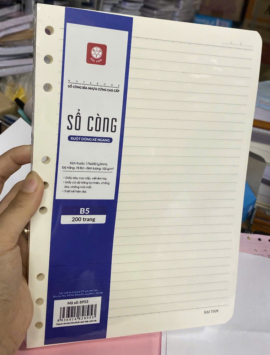 Ruột sổ còng giấy vàng chống lóa khổ B5 Hải Tiến 200 trang 8953 với Thiết kế đục lỗ thông minh giúp tiếp giấy và tháo giấy dễ dàng.