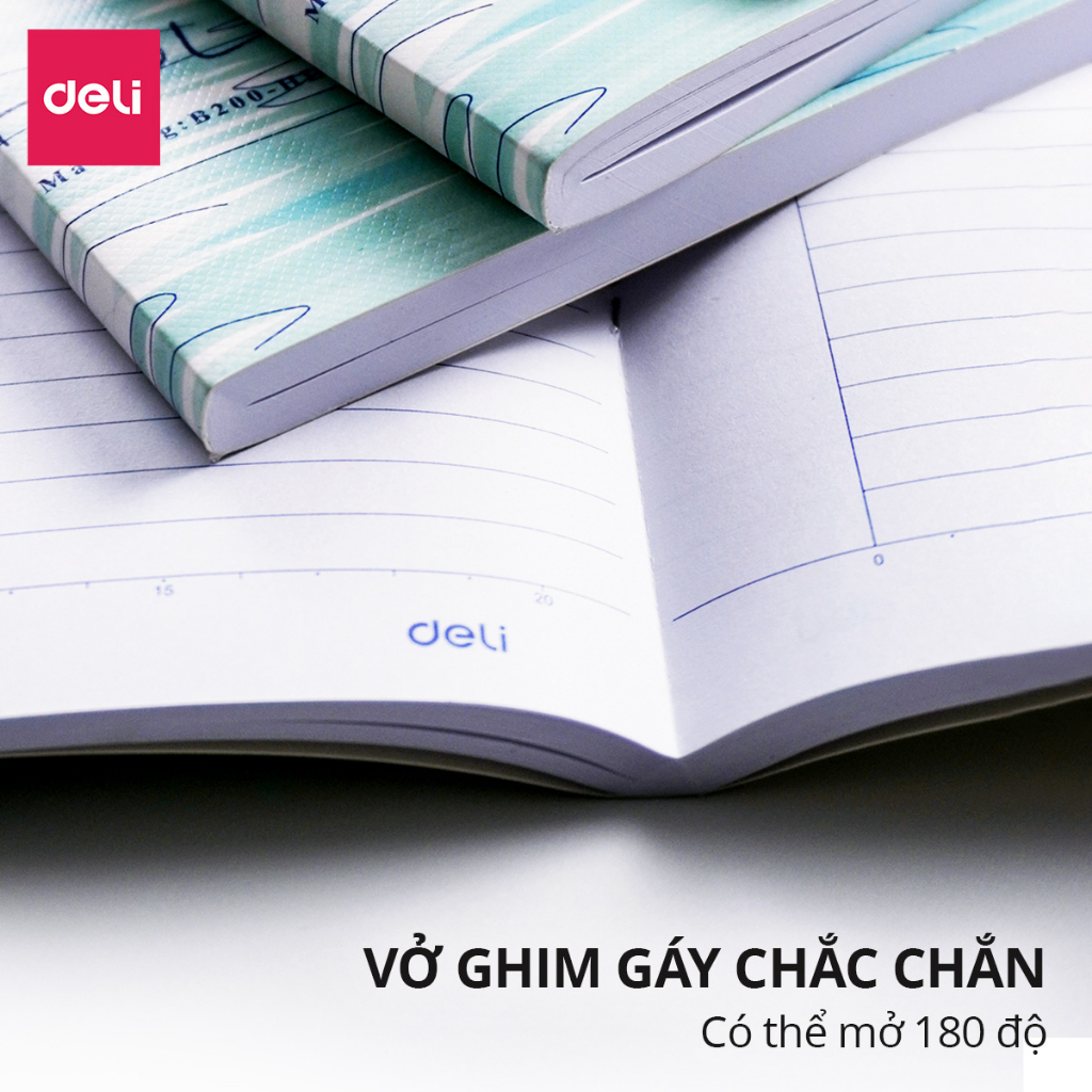Sổ bìa bồi A4 Deli 300 trang CNB547-300 với thiết kế Gáy vở ghim chắc chắn, mở được 180 độ tạo cảm giác thoải mái khi viết