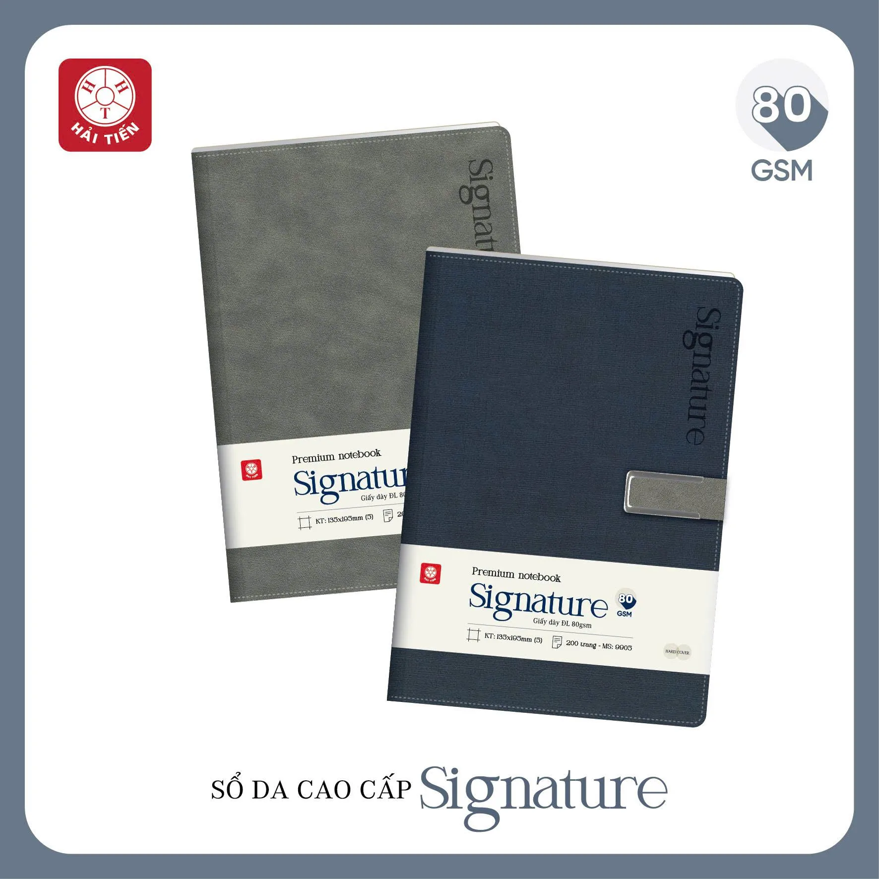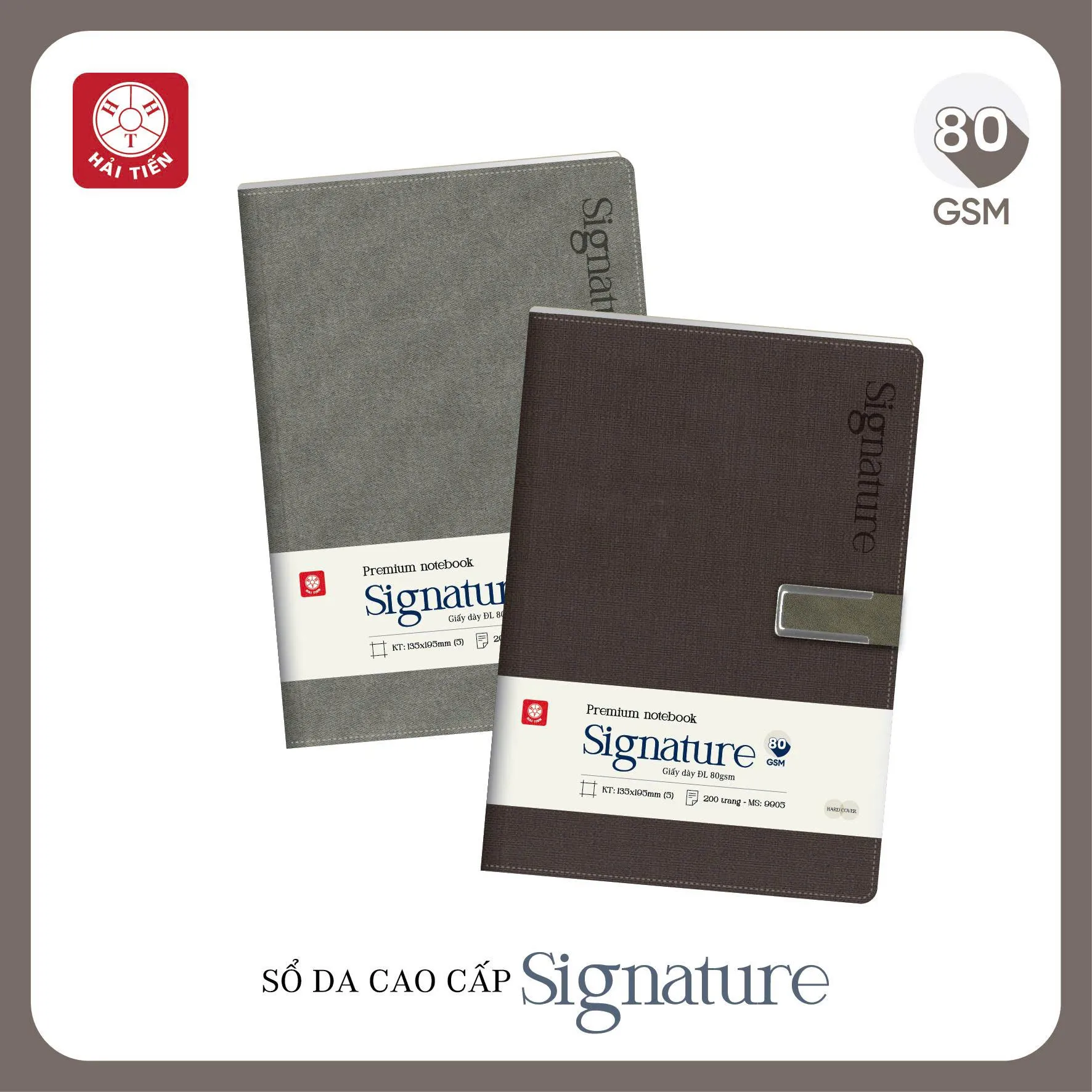 Sổ Bìa Da Cao Cấp Hải Tiến SIGNATURE 5 Khuy Bấm Nam Châm 9905 - Kích Thước: 135x195mm, Định Lượng: 80gsm, 200 Trang
