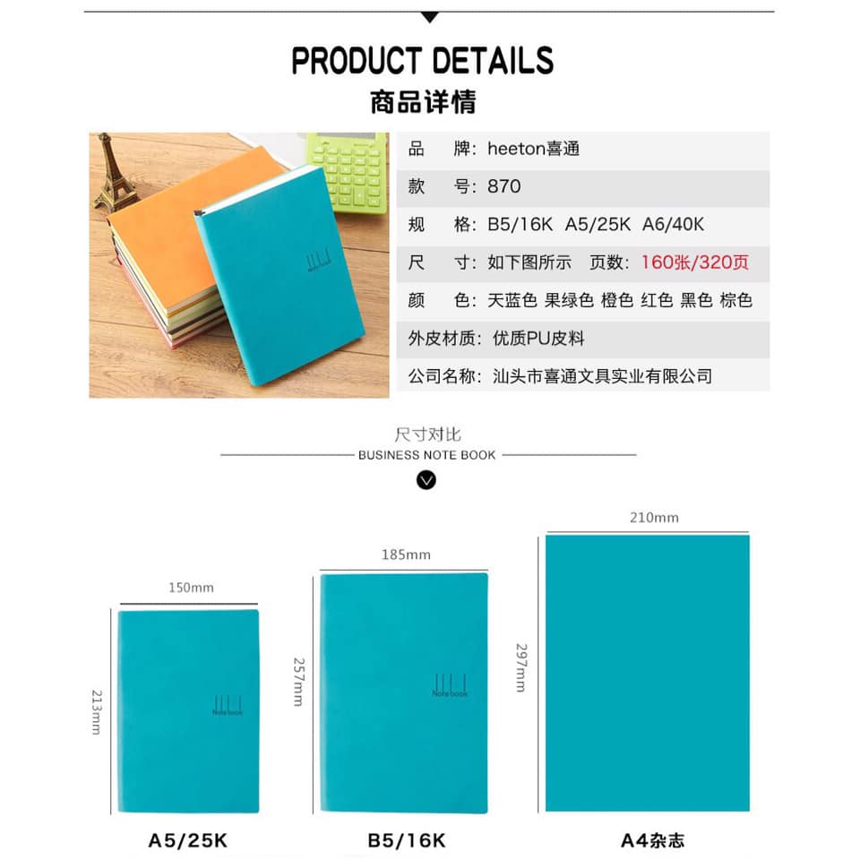 Sổ bìa da Heeton A16-870 khổ B5 (KT: 185x257mm)
