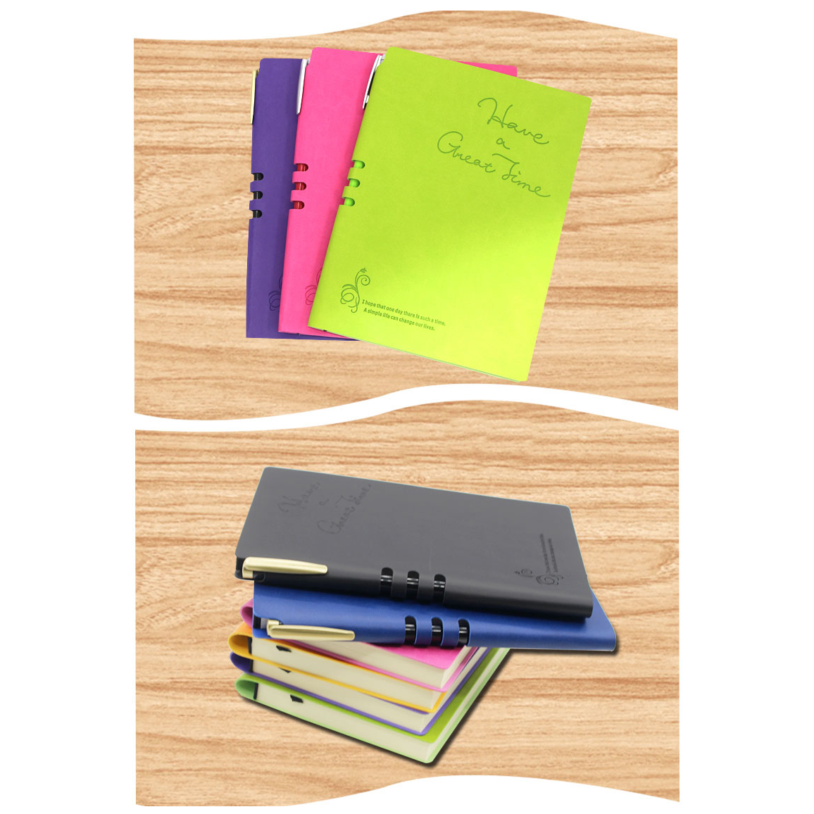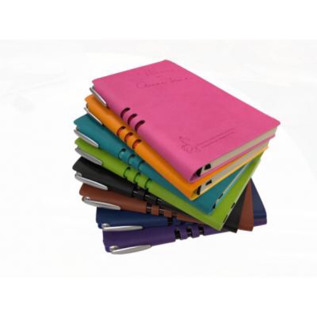Sổ bìa da có nhiều màu, có nơi để bút ở gáy quyển sổ