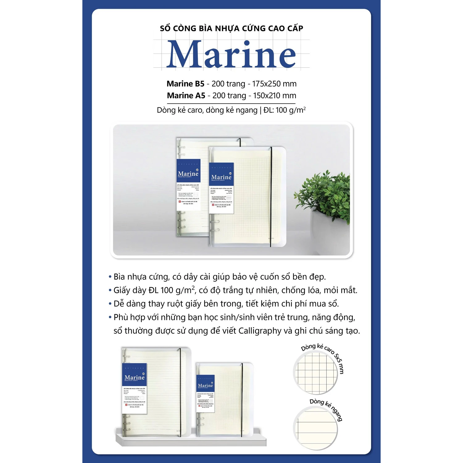 Lấy cảm hứng từ sự đơn giản nhưng bao hàm của biển cả, Sổ còng Marine là người bạn đồng hành hoàn hảo cho những ai yêu thích sự tối giản, tinh tế và bền vững.