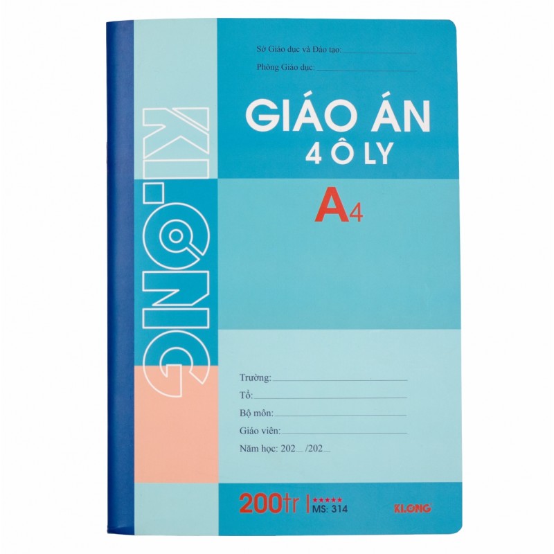 Sổ giáo án 4 ôly 200 trang Klong 314 (T4) theo chuẩn của Bộ Giáo dục. Sản phẩm giúp học tập, ghi chép tài liệu. Bìa sổ màu sắc trang nhã, lịch sự, ruột 4 ô ly ghim gáy. Bề mặt giấy trơn mịn, viết đưa bút dễ dàng. Sổ ghi chép dành cho giáo viên và dân văn phòng.