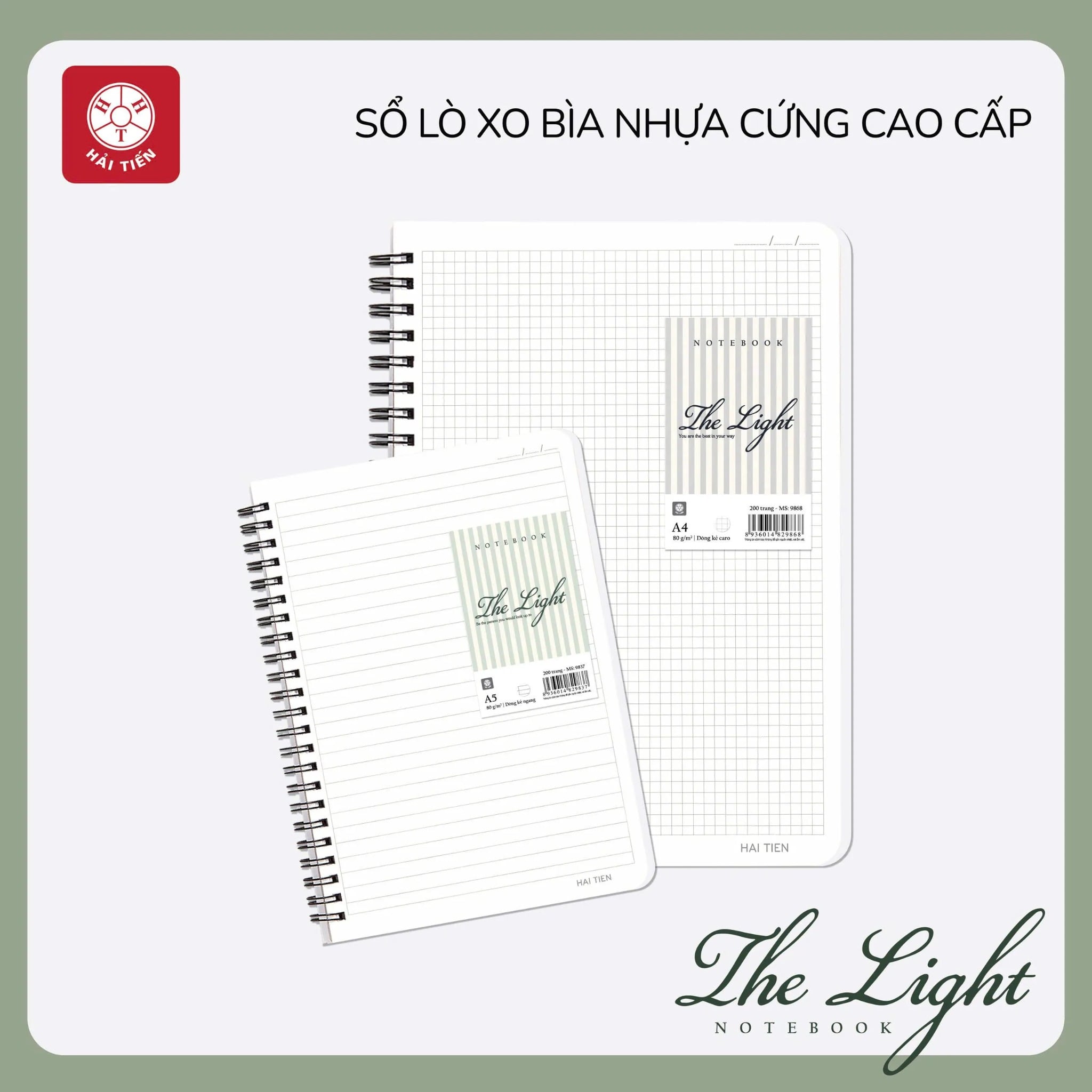 Sổ Lò Xo A6 Hải Tiến The Light Bìa Nhựa 9844– Kẻ Ngang – 200trang, Định Lượng 80gsm