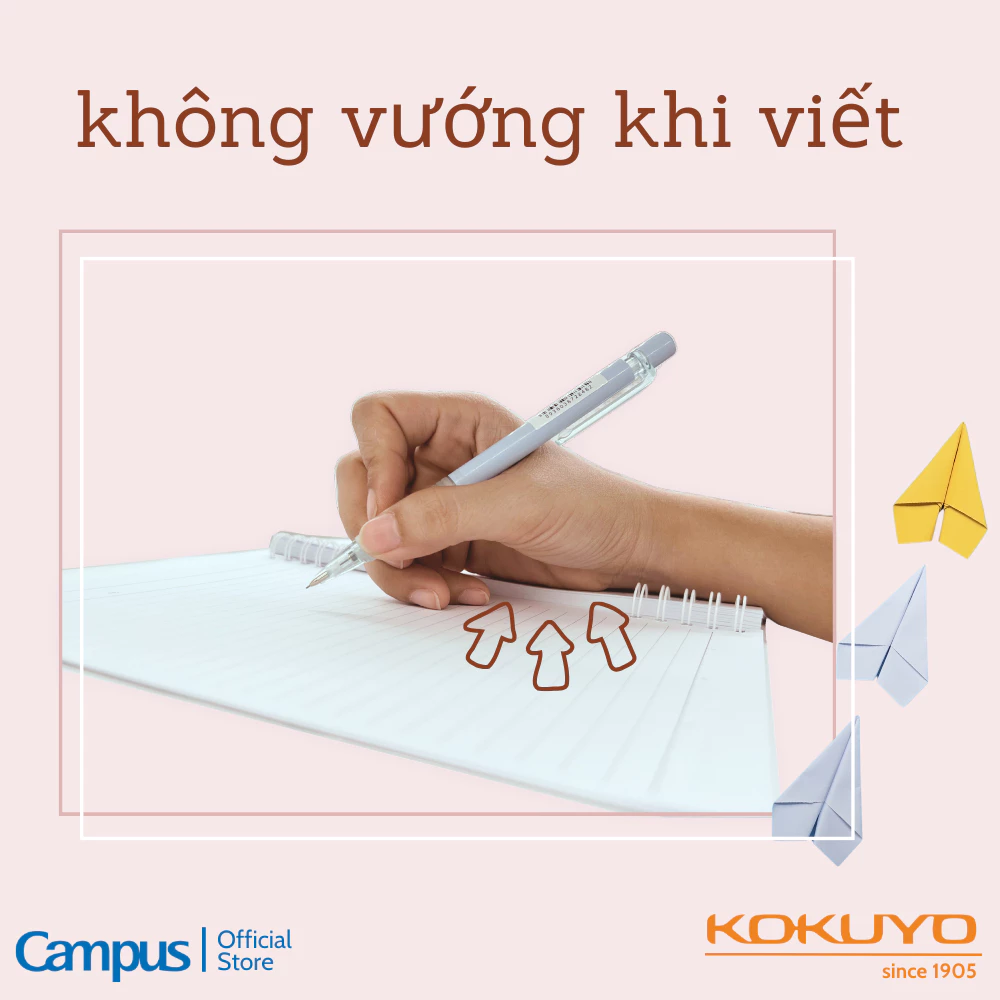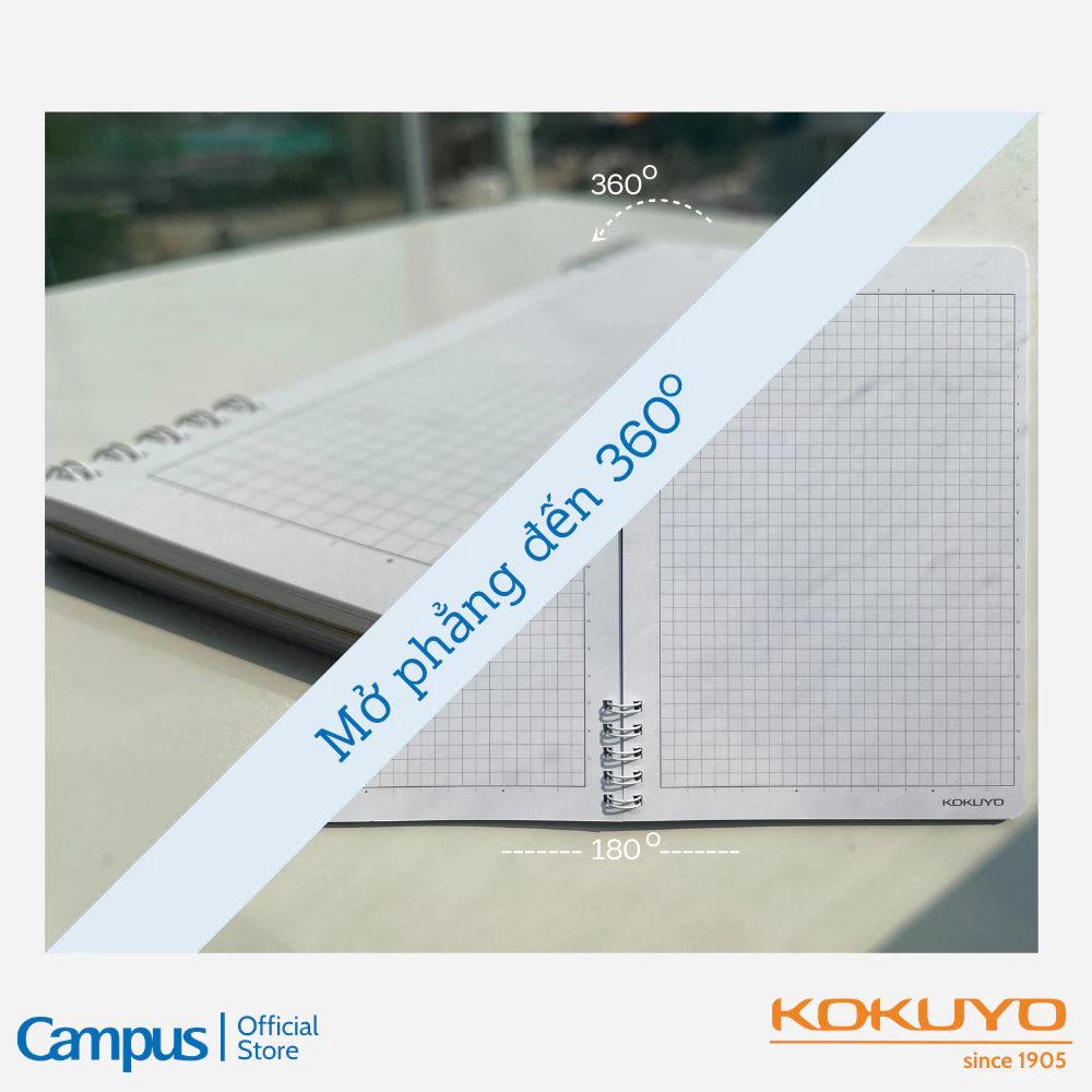 - GHI CHÉP MỌI LÚC: Sổ có thể đặt lên bàn để ghi chép, cũng có thể gập 360 độ để viết ở bàn nhỏ. Khi cần, bạn cầm trên tay mà vẫn ghi bài dễ dàng do có lớp bìa cứng giúp giữ vở luôn chắc chắn