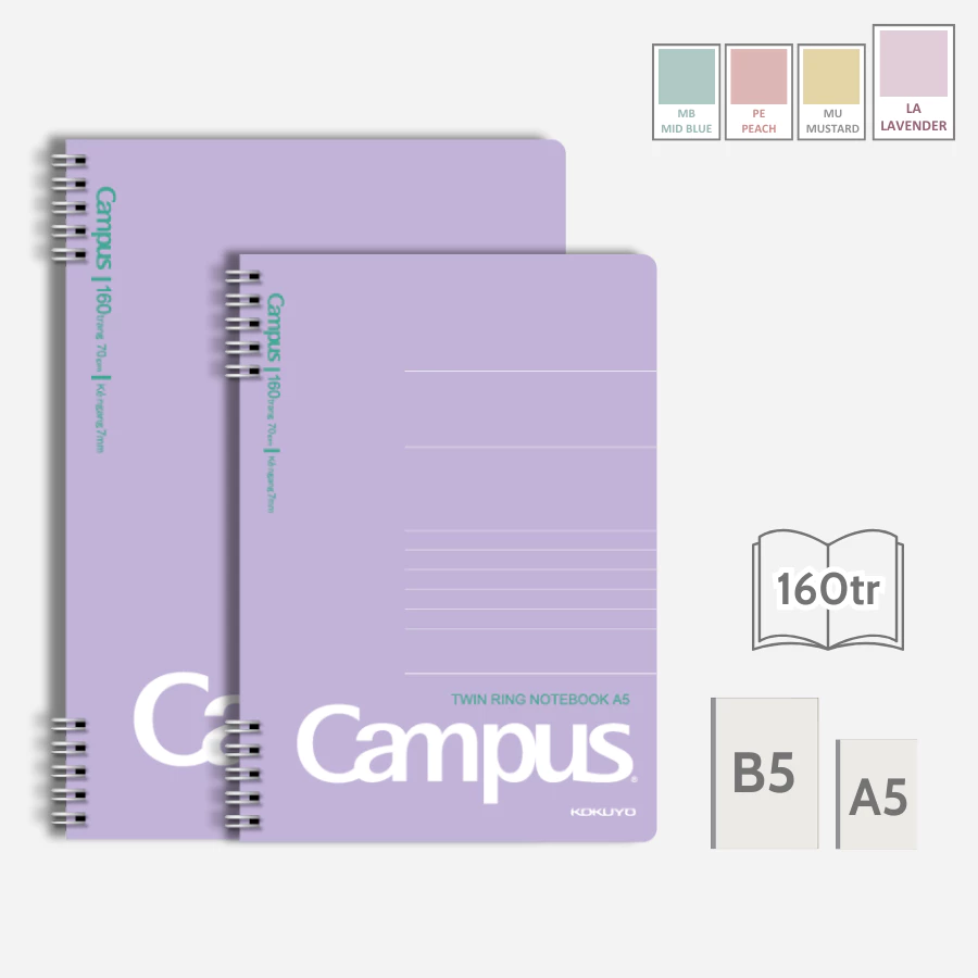 Sổ lò xo B5 Campus KUSUMI 2 đầu 160 trang - Dòng kẻ ngang - Định lượng 70gsm, kích thước 179x252mm