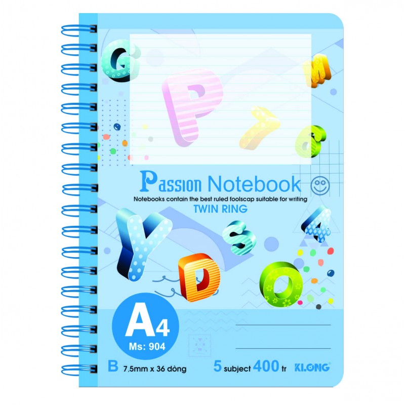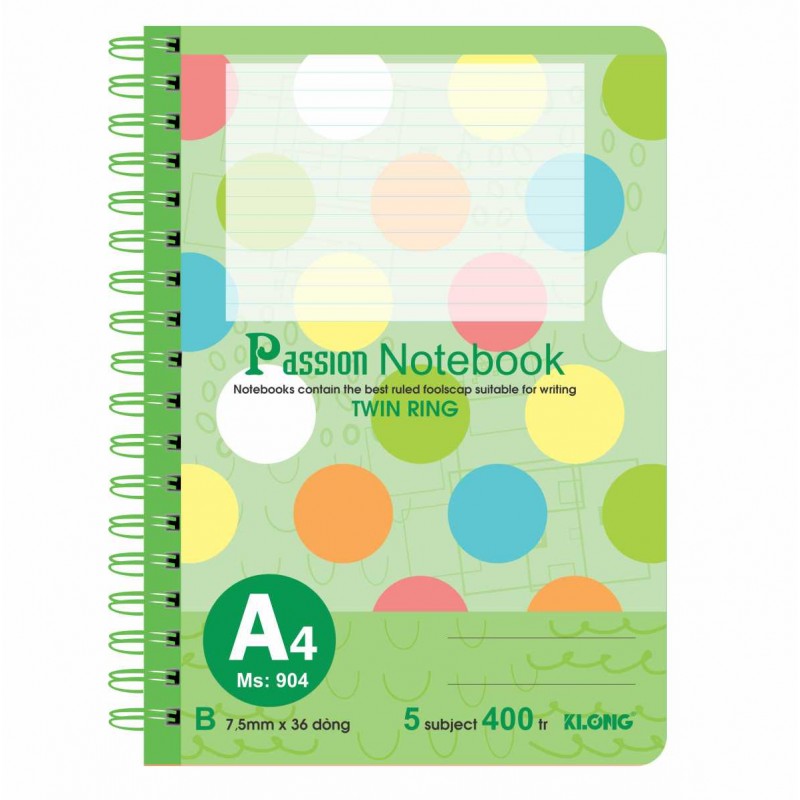 Sổ lò xo kép bìa nhựa A4 Klong 400 trang Ms904