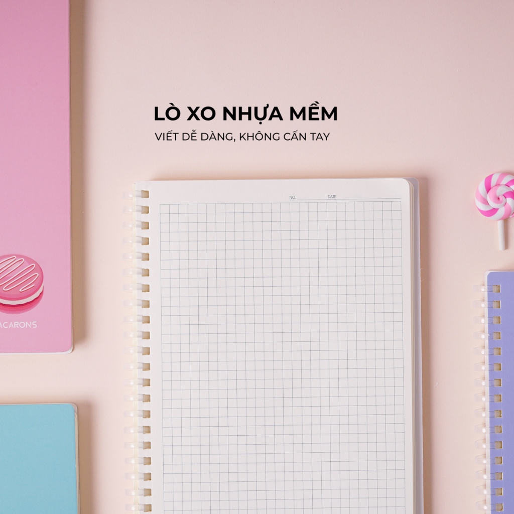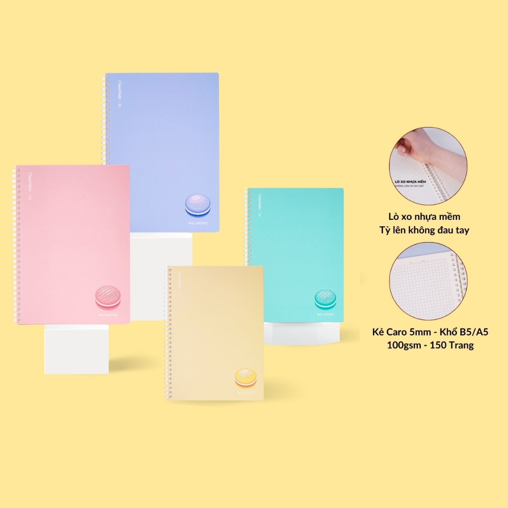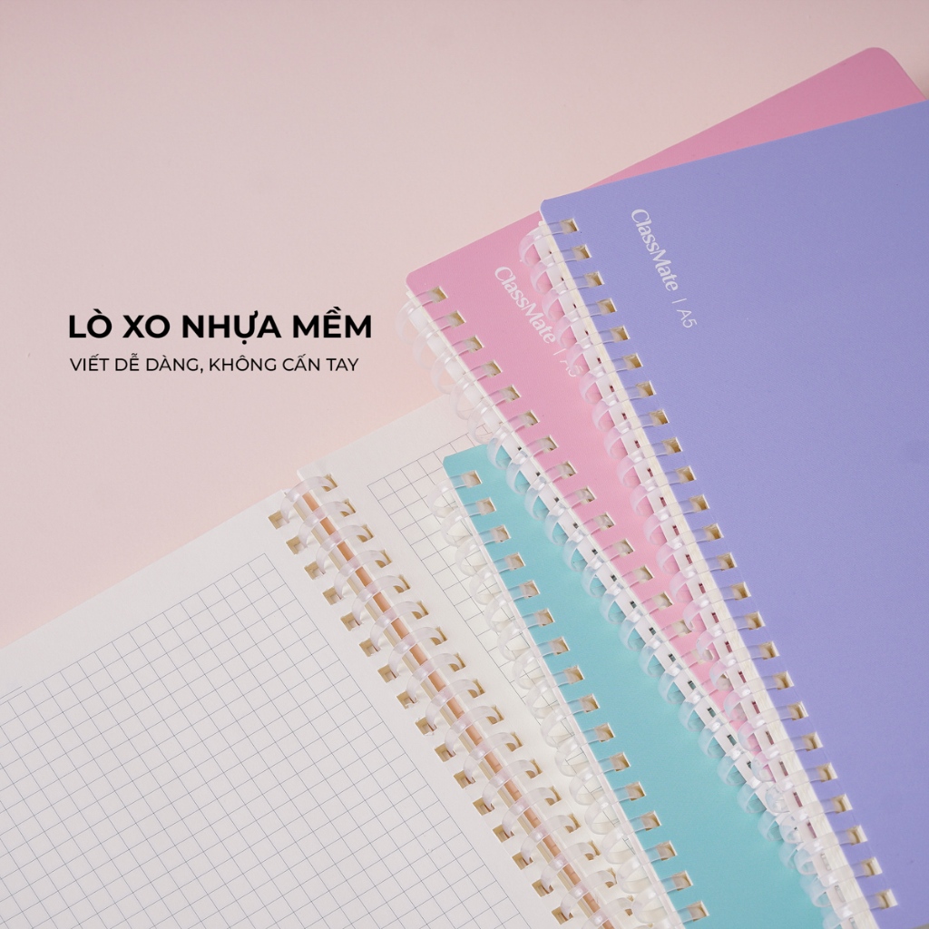 Sổ lò xo Nhựa Mềm khổ A5 Classmate 150 Trang LA5-15-001 - Bìa sổ thiết kế Macarons, dòng kẻ Caro 5mm, định lượng 100gsm