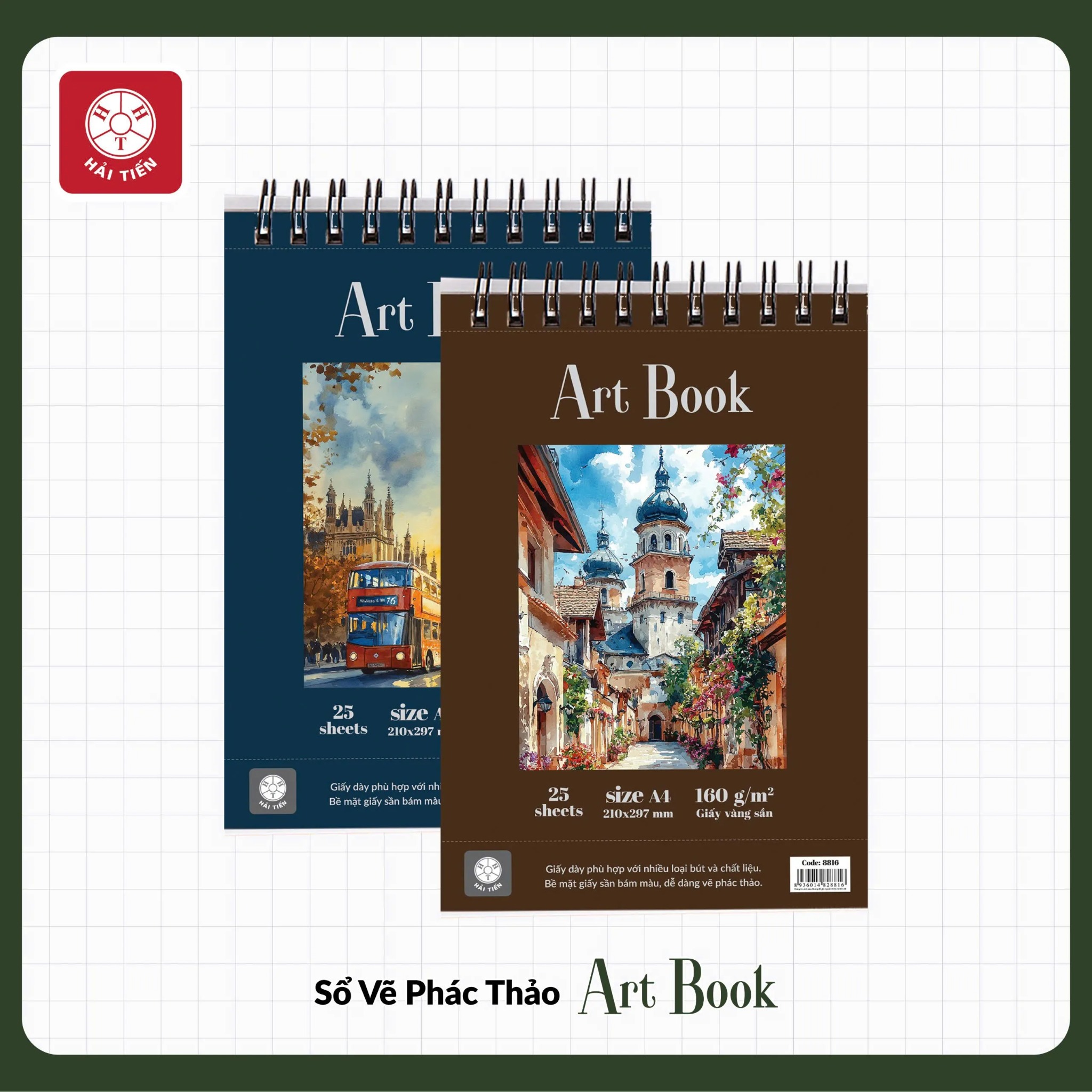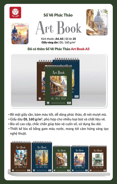 Sổ Vẽ A5 Hải Tiến 25 Tờ ART BOOK 9554 Vàng Sần - Kích thước 150 × 210mm, Định lượng 160gsm- Phù hợp cho nhiều loại bút và chất liệu vẽ (cả màu nước)