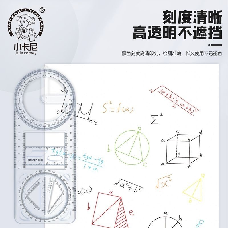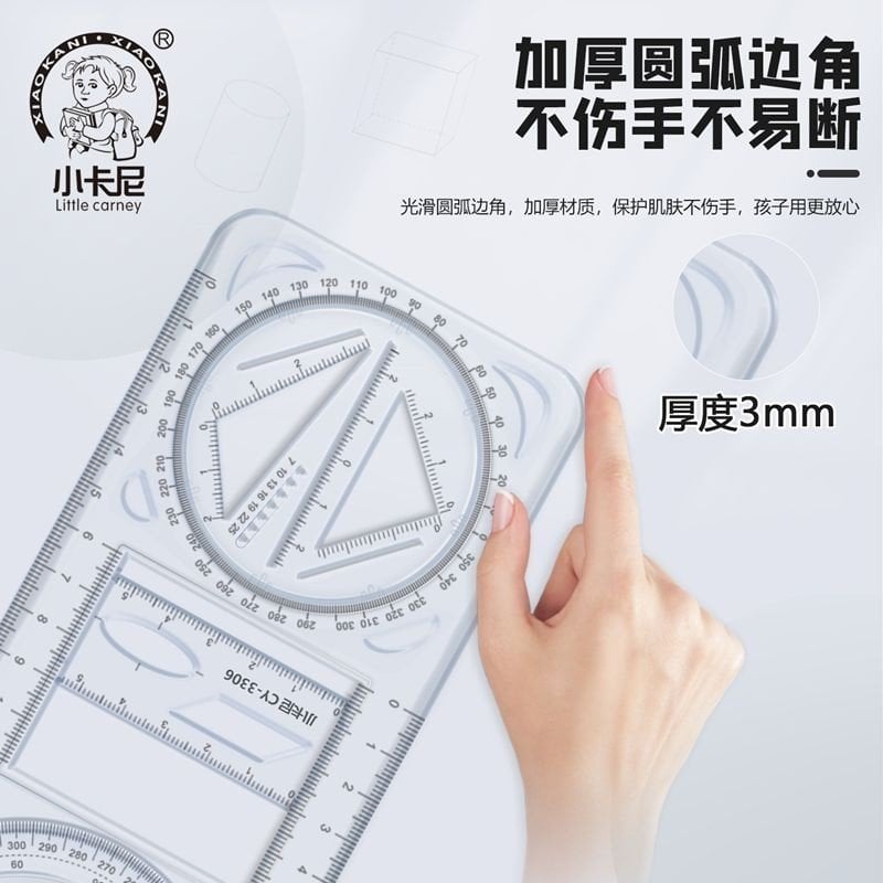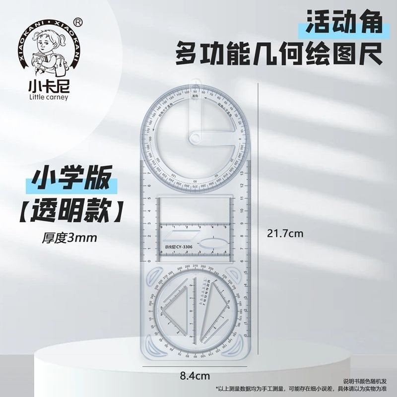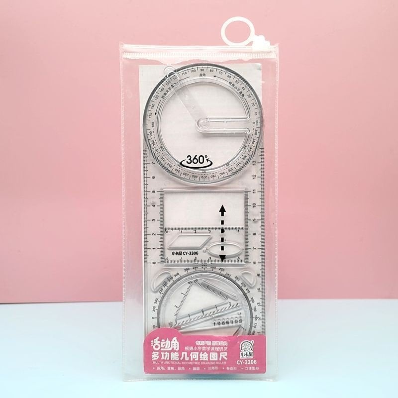Thước kẻ đa năng hình học xoay 360 độ CY-3306 có thể di chuyển, thiết kế cho học sinh tiểu học