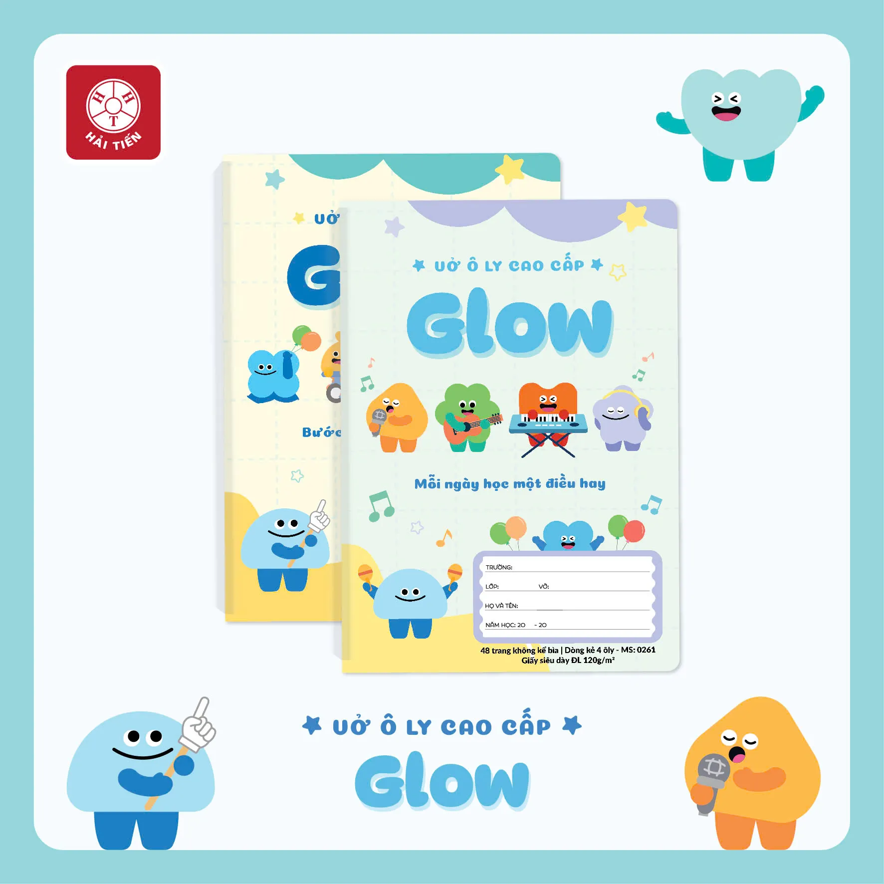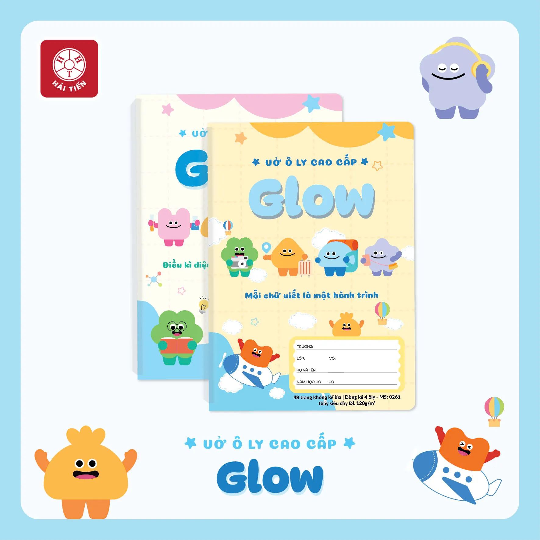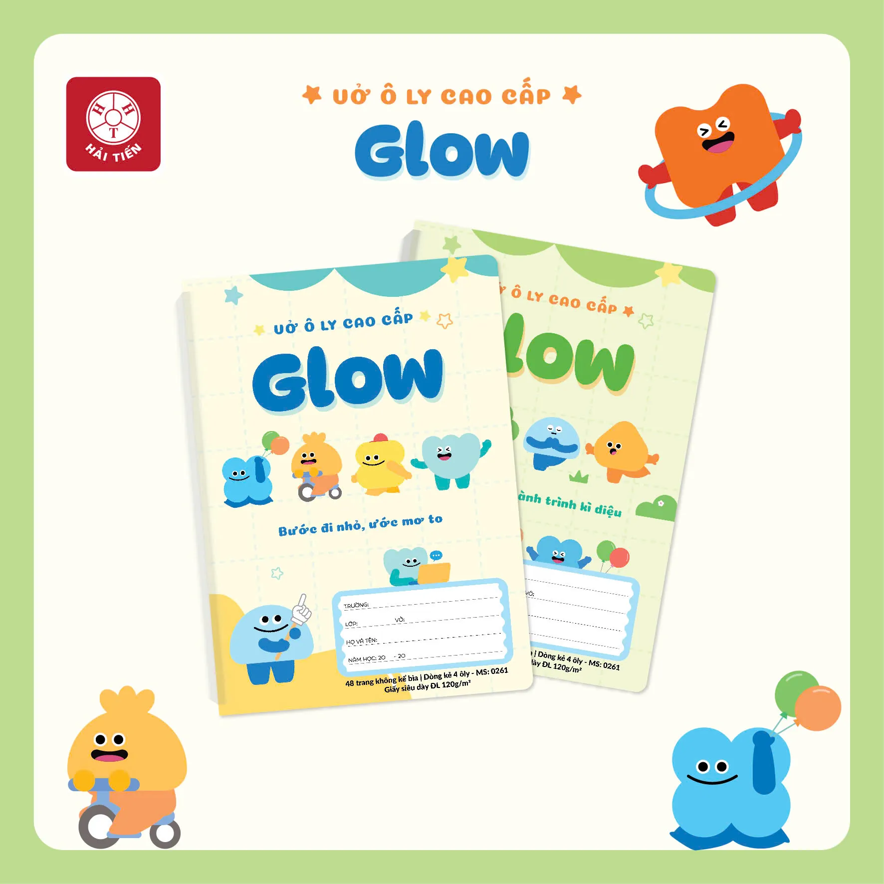 • 🎨 Bìa vở: Cán màng cao cấp, in các nhân vật Glow ngộ nghĩnh, màu sắc tươi sáng