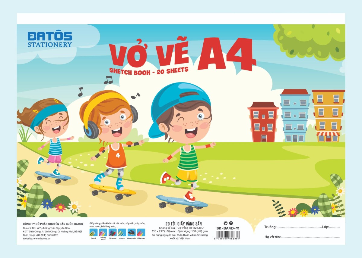 Vở Vẽ A4 BATOS STATIONNERY 20 Tờ SK-BA4D-Y1, Định Lượng 100gsm: Sản phẩm phù hợp cho học sinh tiểu học và trung học sử dụng trong giờ học vẽ. Việc sở hữu một cuốn vở vẽ chất lượng sẽ giúp họ phát triển trí tưởng tượng và kỹ năng hội họa, khám phá sự sáng tạo của bản thân mỗi ngày.