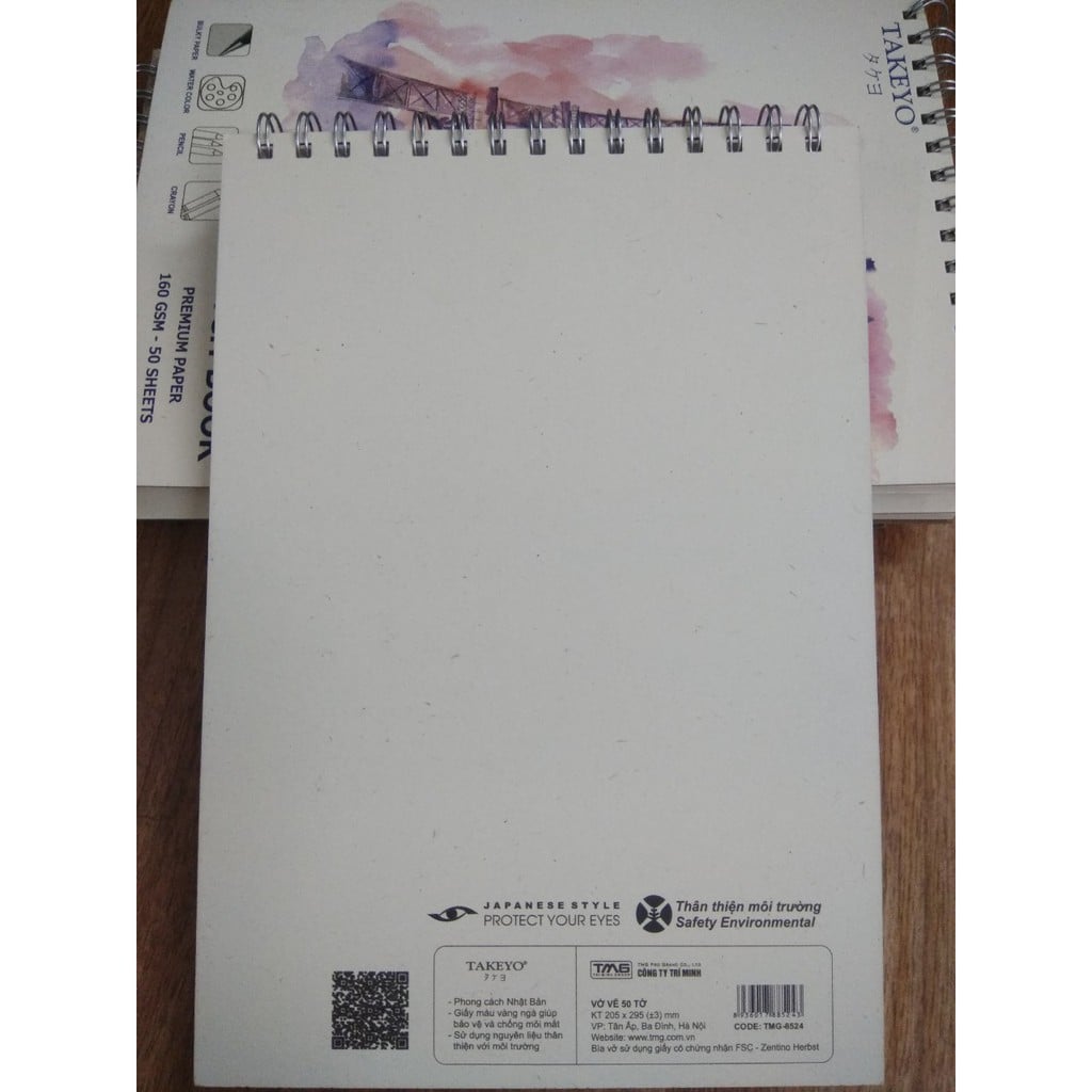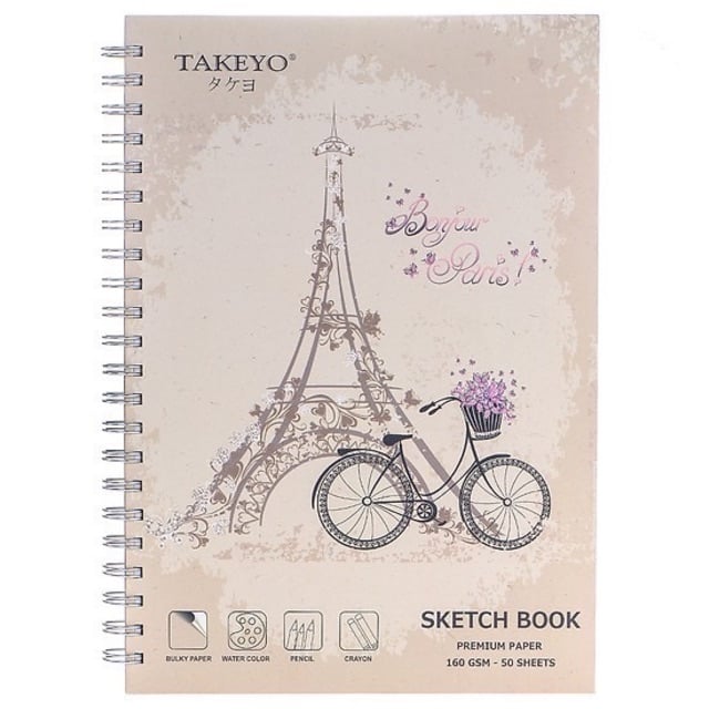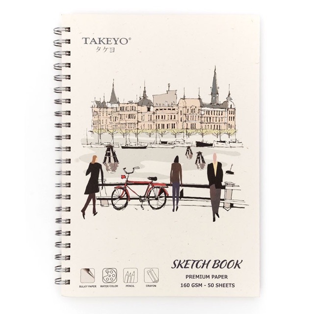 Vở vẽ lò xo TAKEYO A4 - 50 tờ (Giấy vẽ chuẩn mỹ thuật)