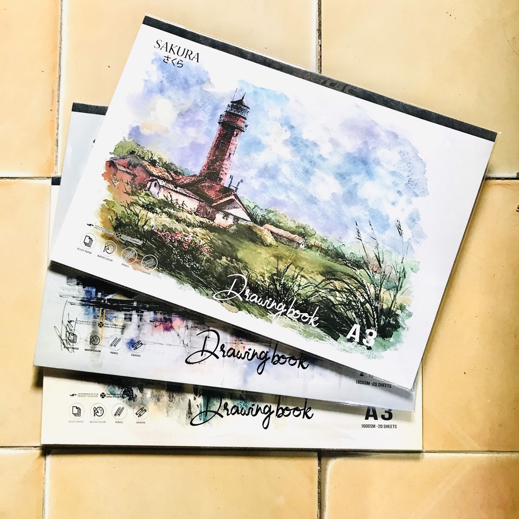 Vở vẽ Sakura khổ A3 - 20 tờ là giấy vẽ chuyên dụng